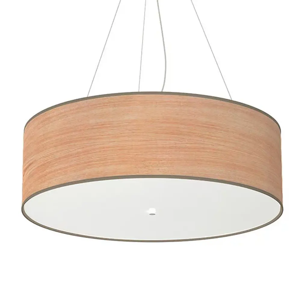 Simple, adaptable, and sophisticated. The Thao Grande Pendant by Seascape Lamps offers everything you want in a modern lighting fixture. A disc ceiling mount supports the fixture, with slender aircraft cables allowing it to hover elegantly above. Its smooth drum shade is enclosed with a frosted acrylic diffuser, concealing its lamping and softening its light for ample and glare-free illumination. This fixture suits any residential or commercial space with ease.