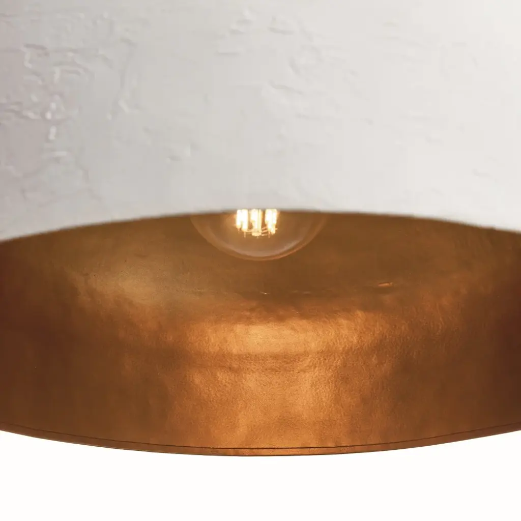 A modern, sleek pendant with a lightly textured metal dome shade and golden champagne finished interior giving a soft glow. The beautiful contrasting hues give this light a contemporary feel but can be placed in any setting for a modern twist.