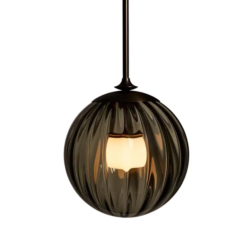 Illuminate your space with sophistication and style with The Roll and Hill 01 LED Pendant Light. Simple and retro, this well-regarded fixture adds a tasteful layered presence to any setting. With a handcrafted glass globe shade, slender stem, and elegant brass accents, the Globe LED Pendant exudes a California Modern character and casts a warm, radiant light. Highlights