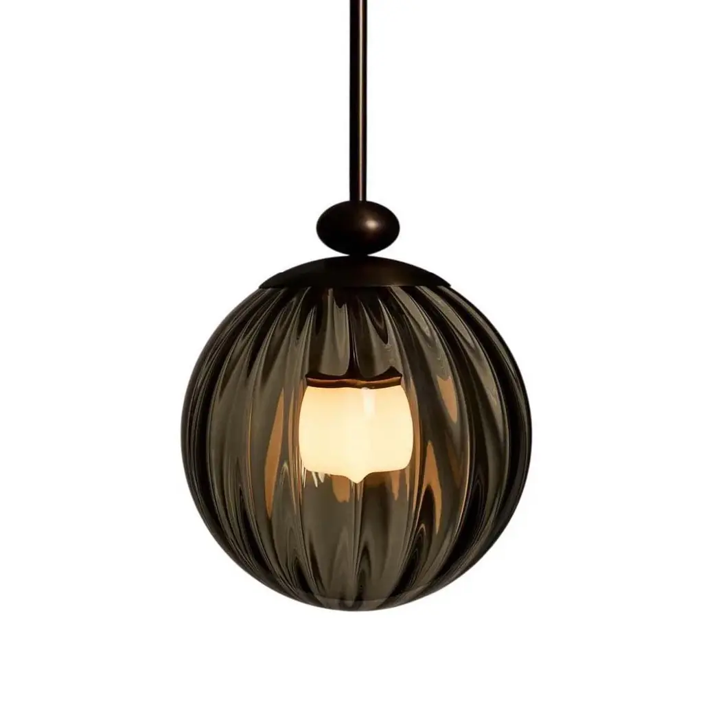 Elevate your space with the Roll & Hill 03 LED Pendant Light. Its combination of retro charm and elegant craftsmanship brings a luxurious touch to any room. The handcrafted glass shade and intricate brass details add a sophisticated, California Modern aesthetic. With energy-efficient lighting, this fixture emits a warm, radiant glow that enhances its sleek design. Highlights