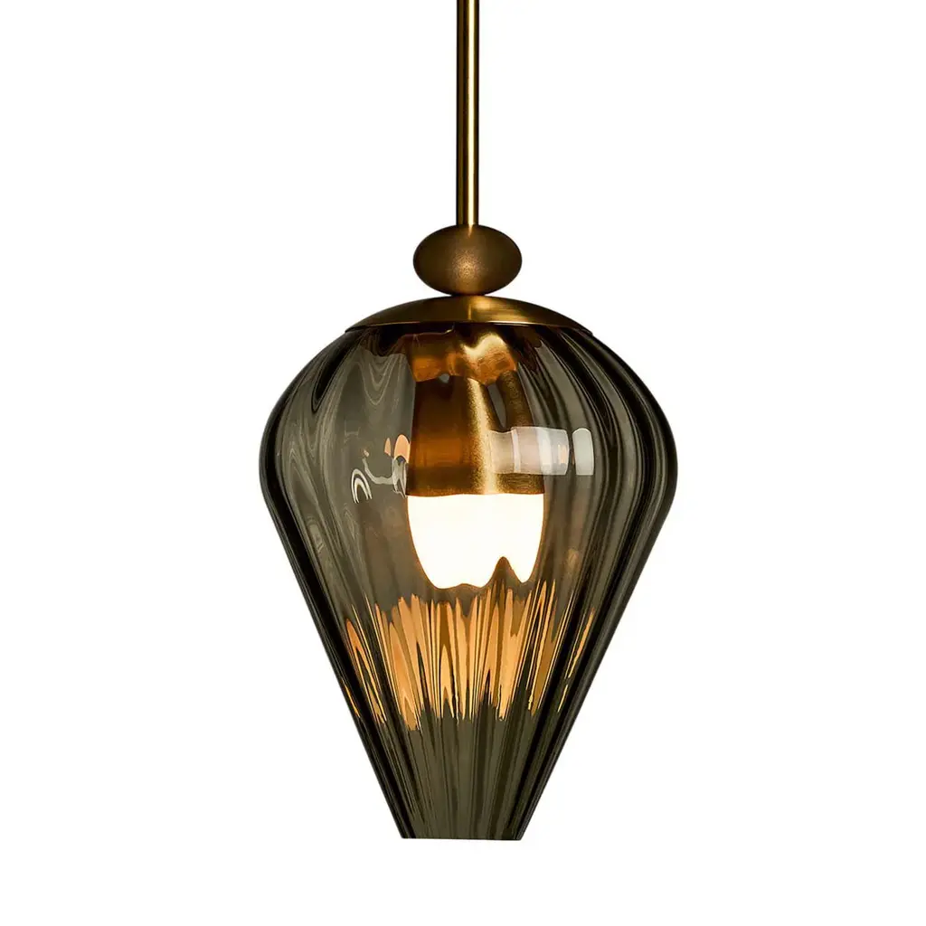 Elevate your space with the Roll & Hill 03 LED Pendant Light. Its combination of retro charm and elegant craftsmanship brings a luxurious touch to any room. The handcrafted glass shade and intricate brass details add a sophisticated, California Modern aesthetic. With energy-efficient lighting, this fixture emits a warm, radiant glow that enhances its sleek design. Highlights