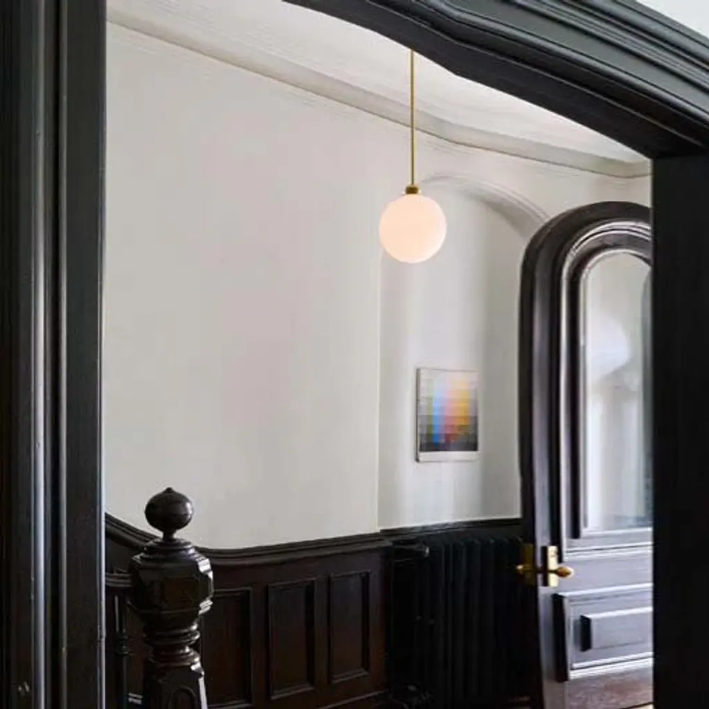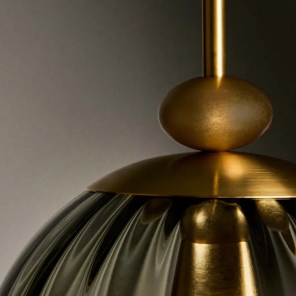 Elevate your space with the Roll & Hill 03 LED Pendant Light. Its combination of retro charm and elegant craftsmanship brings a luxurious touch to any room. The handcrafted glass shade and intricate brass details add a sophisticated, California Modern aesthetic. With energy-efficient lighting, this fixture emits a warm, radiant glow that enhances its sleek design. Highlights
