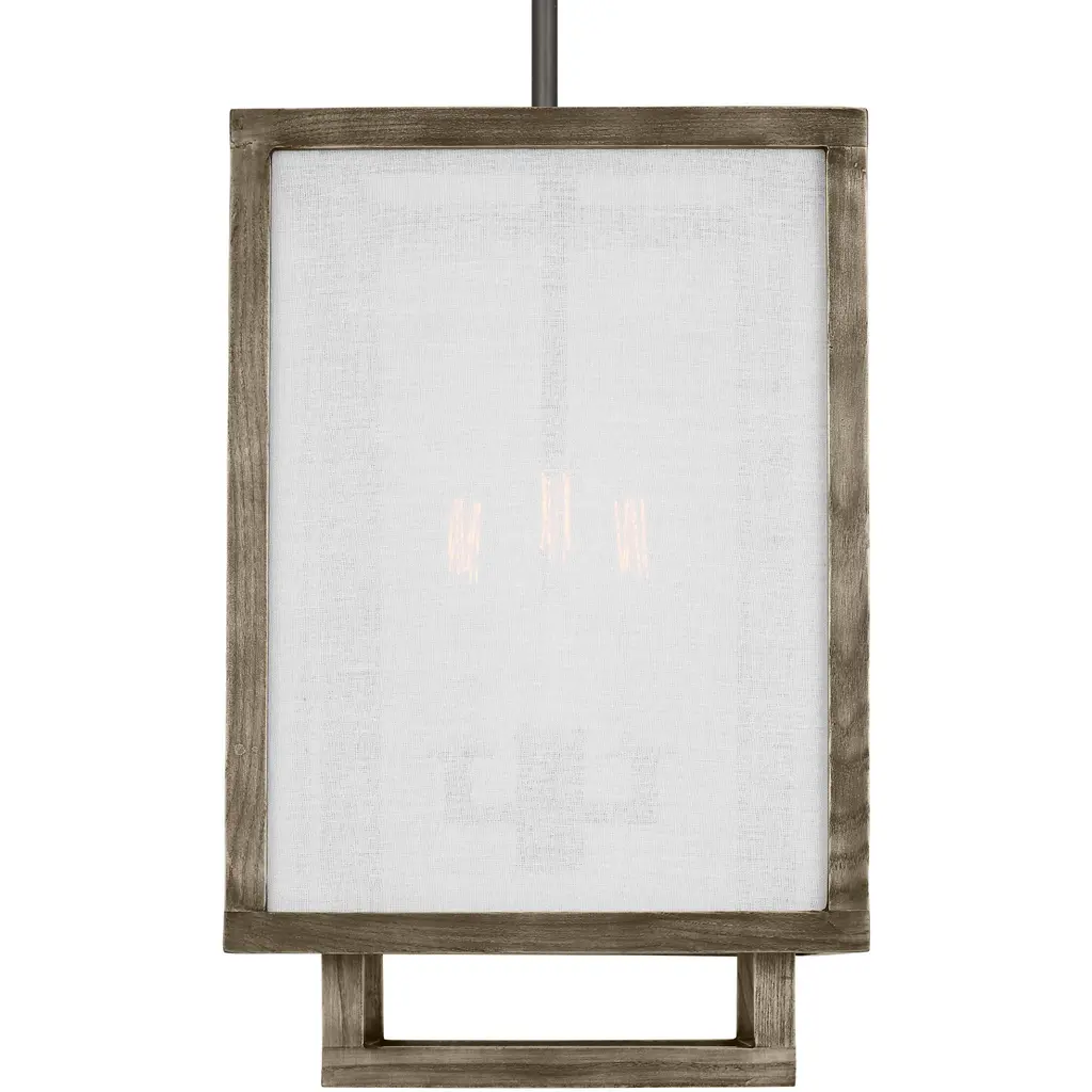 Layering is the signature staple of the Brockway series by Thom Felicia. The wood-frame-within-a-wood frame design is sheltered with linen panels allowing a hint of the architecture within to be experienced directly, while the remainder is seen diffused through the linen. The result is a light source of direct light downward and softened light through the side panel veils, creating a perfect illumination for any space.