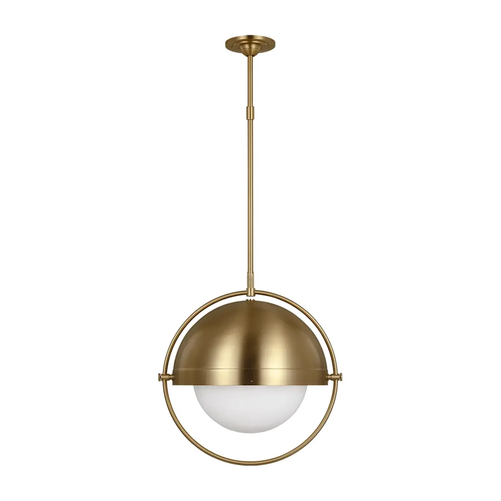 The Thomas O 'Brien Bacall Pendant Light from Visual Comfort & Co offers a sophisticated and animated lighting experience, illuminated by a warm Milk White glass shade. Outfitted with an intriguing rotating design, this modern, art deco-inspired pendant brings a cinematic feel to any living space. With an option to adjust the light to the right, left and upwards, the Bacall Pendant will create a uniquely captivating atmosphere of elegance. Highlights
