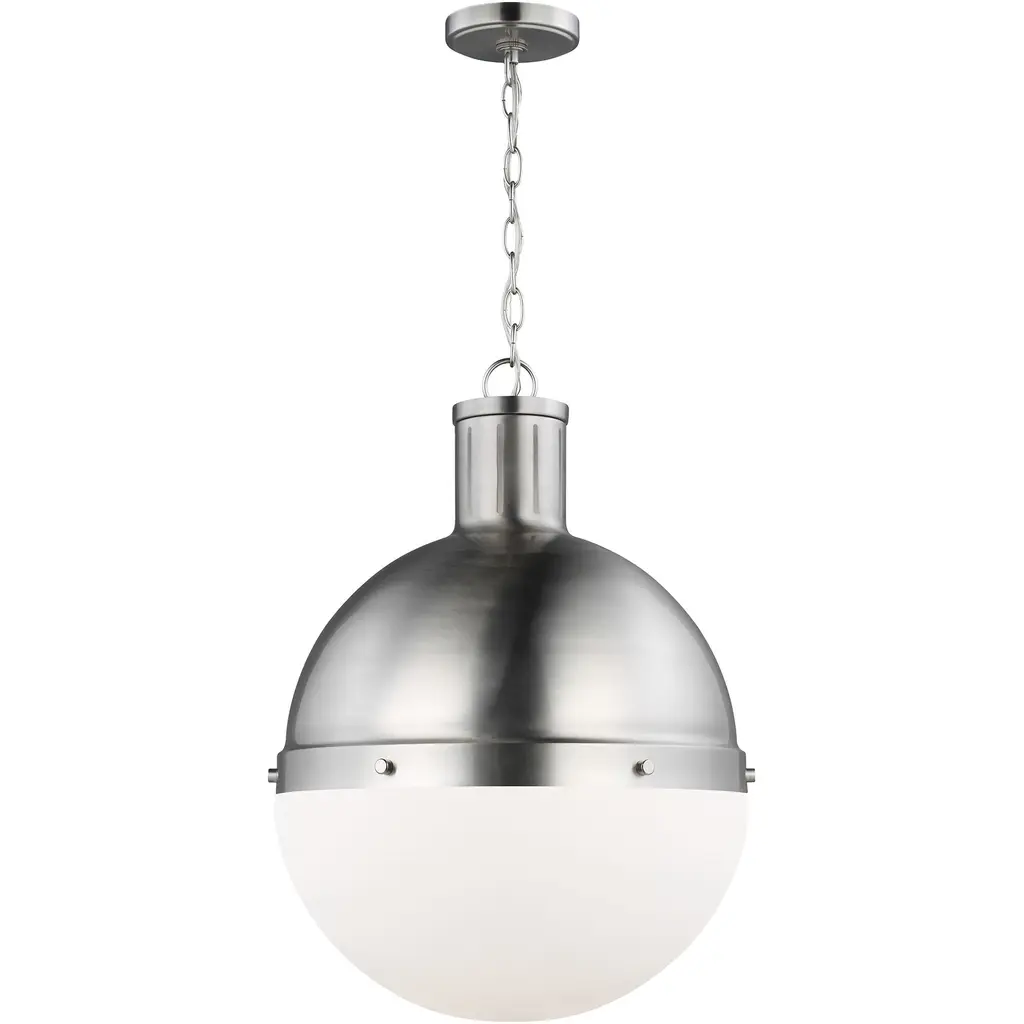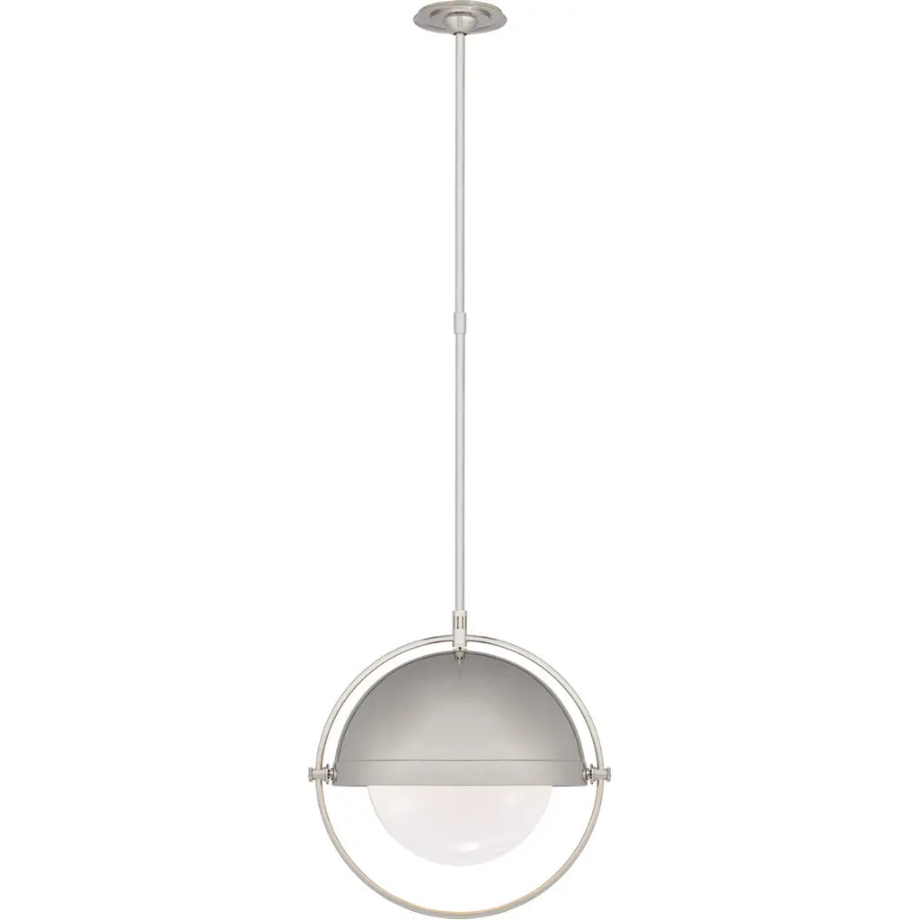 Hicks Extra Large Pendant in Polished Nickel with White Glass