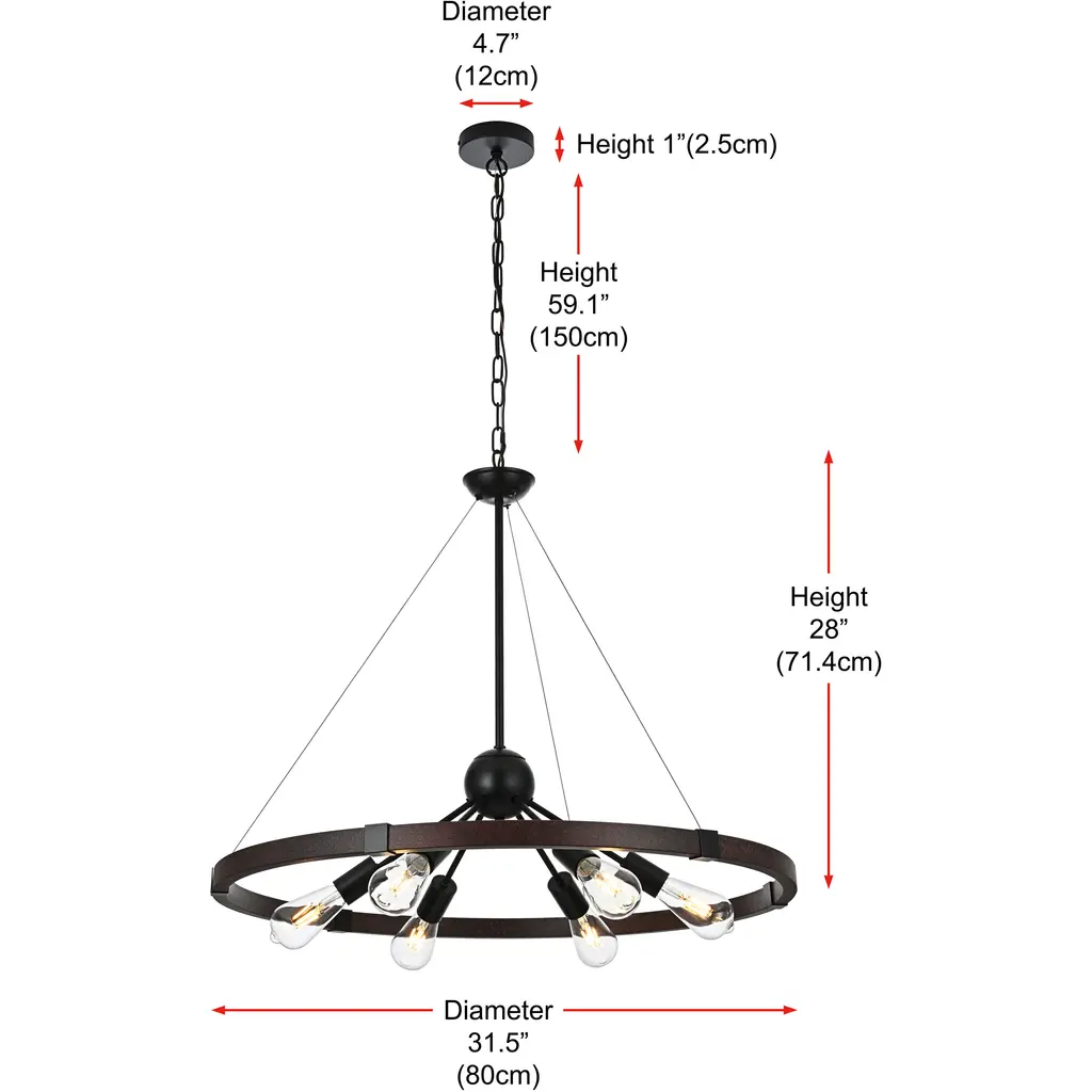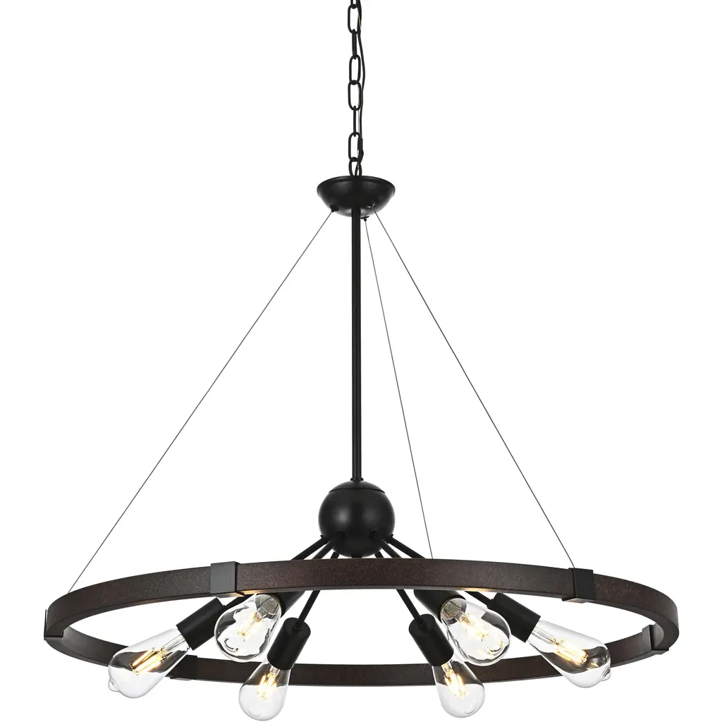 Thora 6 Light 32 Inch Weathered Black And Rust Pendant Ceiling Light