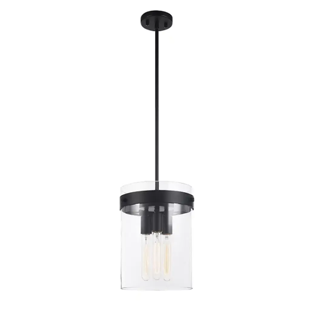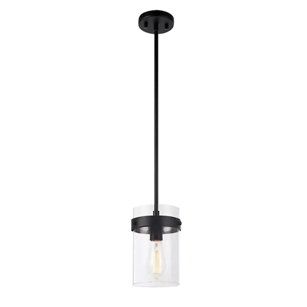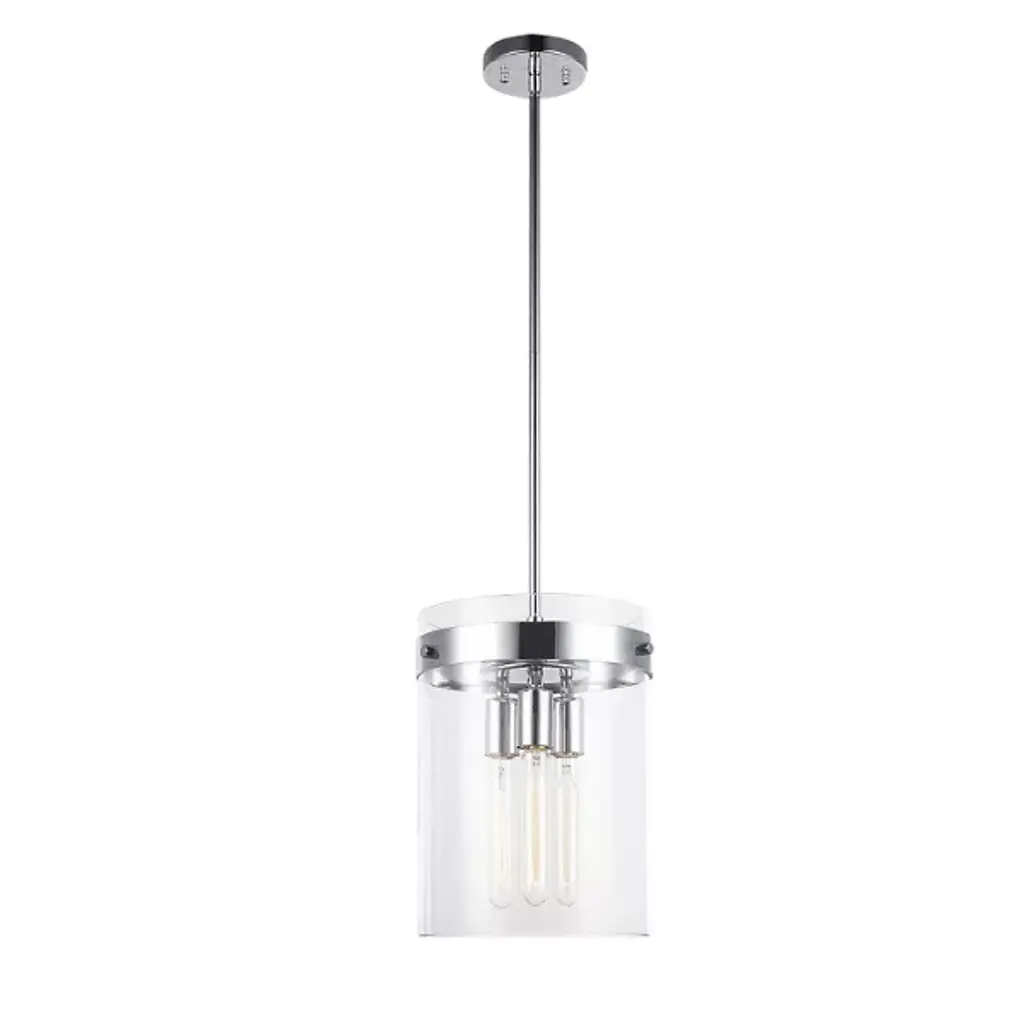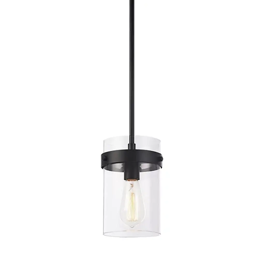 Enhance modern and contemporary décor alike with the Thorne Pendant from Alder & Ore. Simple and strong, it uses a circular ceiling mount and central stem made of stainless steel to drop a single socket downward, holding a ring set around it. The small metal ring retains a cylinder of clear glass around the lamping, blunting brightness from the sides, while its open base focuses a more intense light below the fixture.
