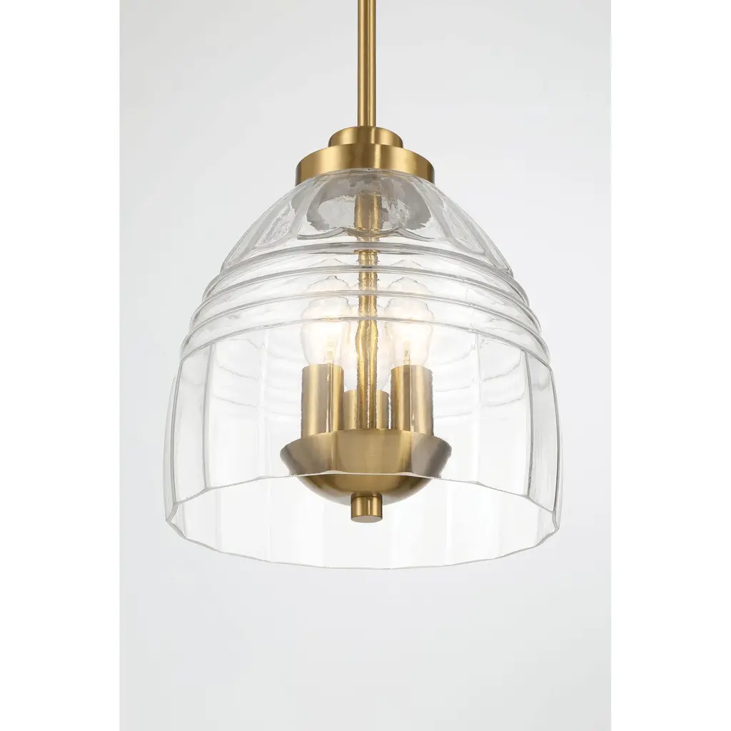 Three Candle Lights Chain Pendant With Clear Glass - Satin Brass - Clear,gold
