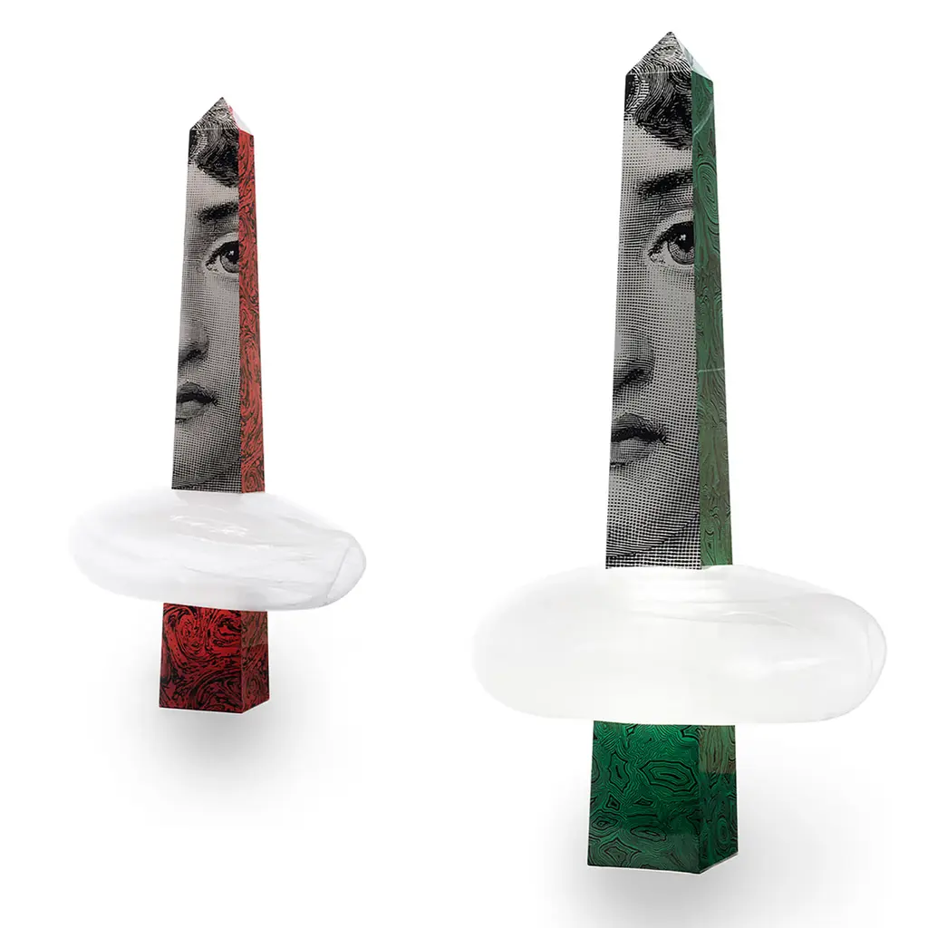 Through the Clouds, designed by iconic Atelier Fornasetti for WonderGlass, takes inspiration from a daydream. Delicate glass clouds float above the viewer, suggesting a different point of view. Obelisks protrude from the clouds, a nod to the ancient Egyptians who worshipped the obelisk as a symbol of ‘Ra’ the sun god. Produced by hand, Through the Clouds blends printed and lacquered metal with blown glass demonstrating both Fornasetti and WonderGlass’ dedication to craftsmanship.