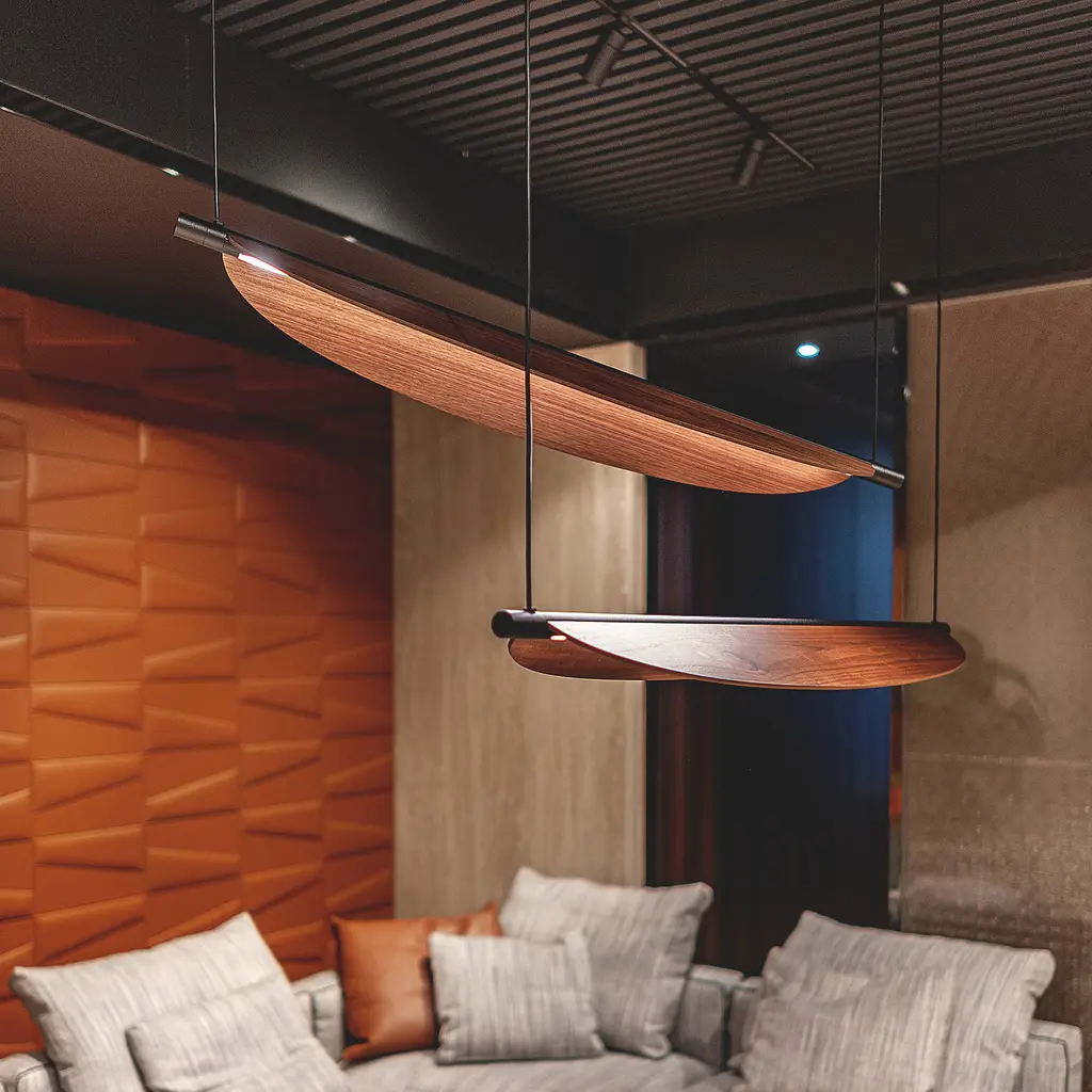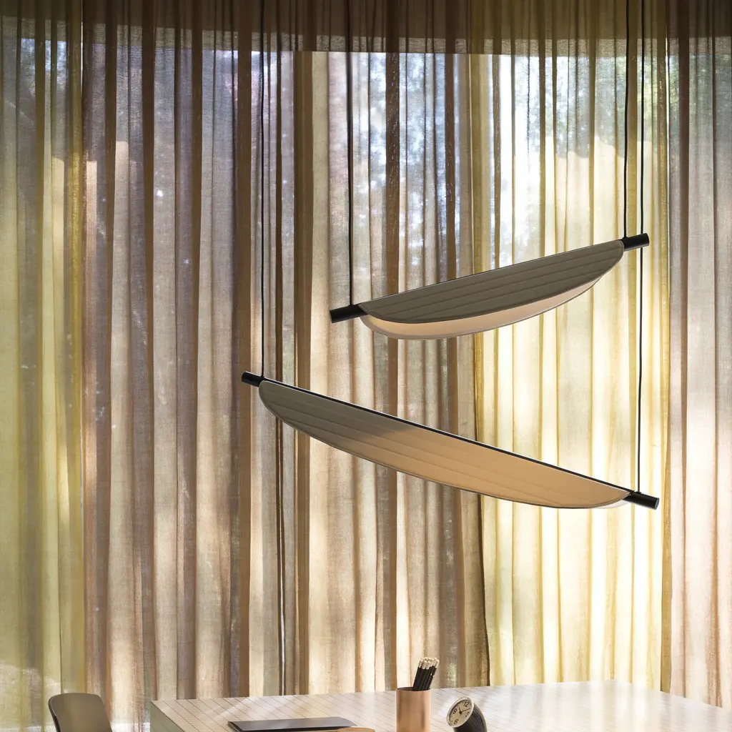 Add a touch of nature-inspired beauty to your space with the Thula LED Pendant Light from TOOY. Its integrated, dimmable LED provides adjustable lighting, while the organic shade options in walnut, oak, or quilted leather add a touch of elegant contrast to the sleek metal construction. Perfect for highlighting a dining room table, kitchen island countertop, or paired in multiples for a unique entryway design. Highlights