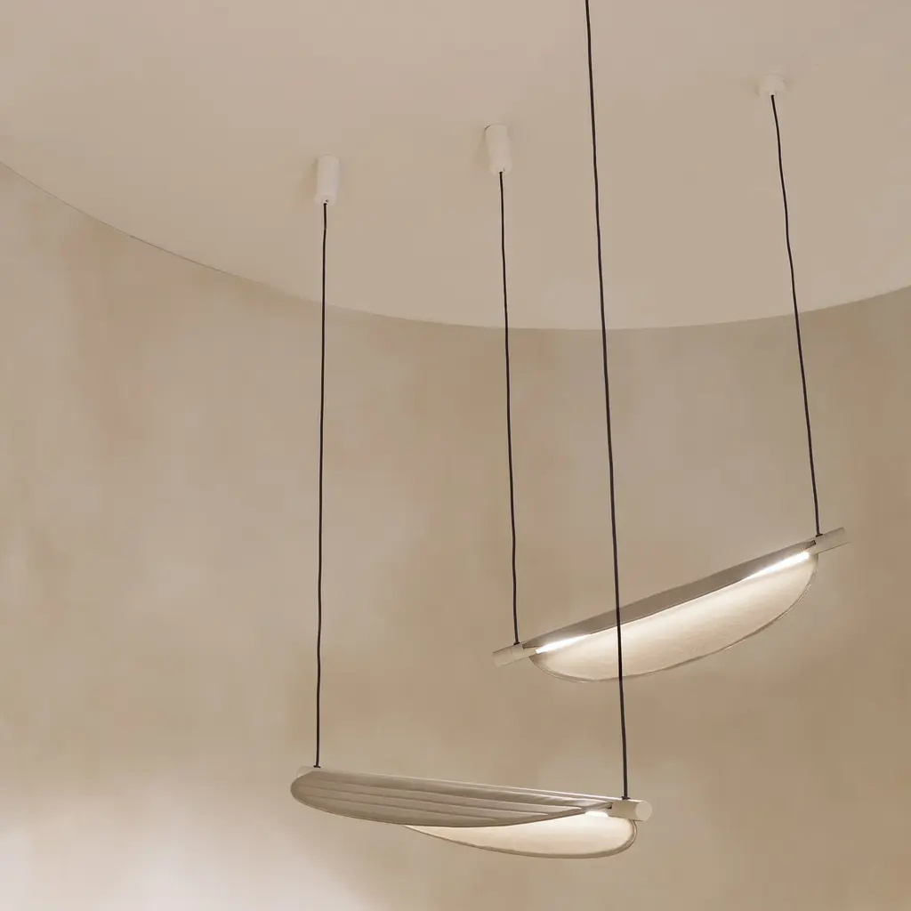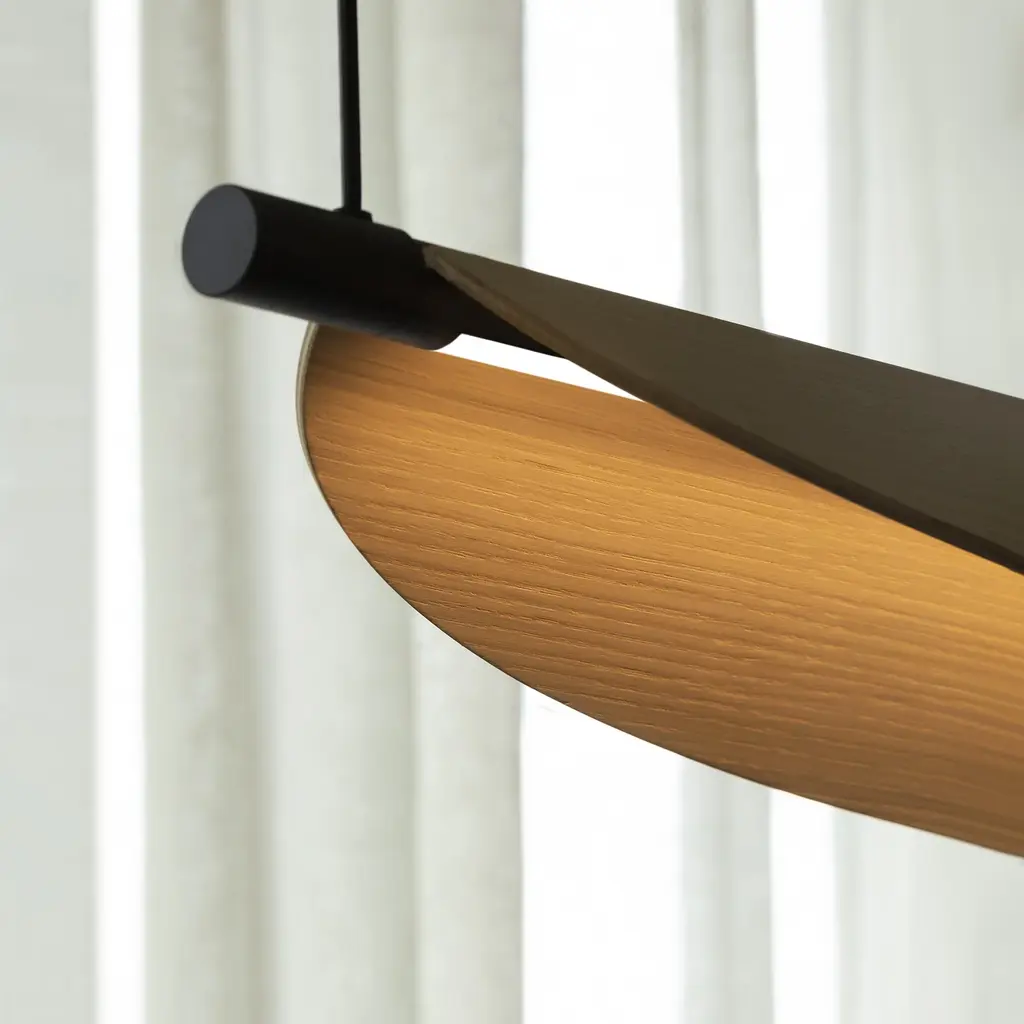 Add a touch of nature-inspired beauty to your space with the Thula LED Pendant Light from TOOY. Its integrated, dimmable LED provides adjustable lighting, while the organic shade options in walnut, oak, or quilted leather add a touch of elegant contrast to the sleek metal construction. Perfect for highlighting a dining room table, kitchen island countertop, or paired in multiples for a unique entryway design. Highlights