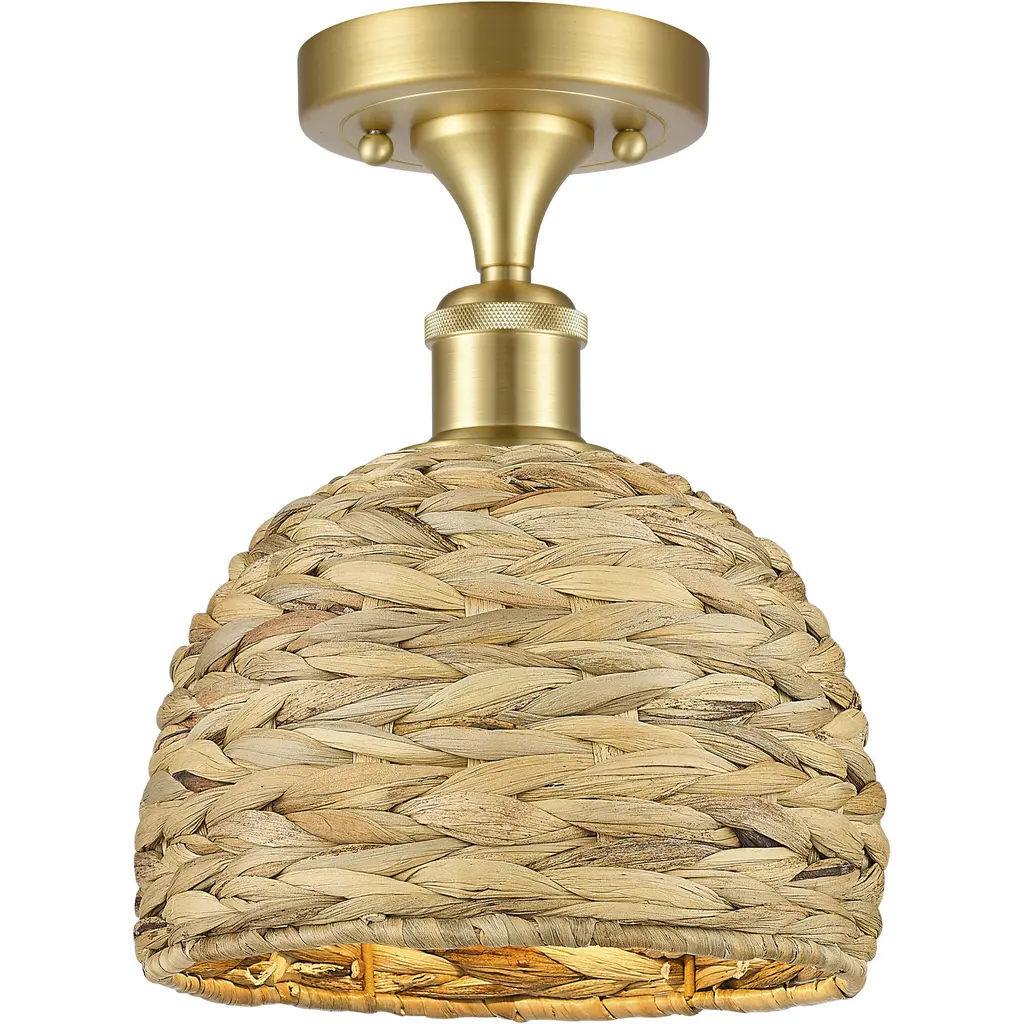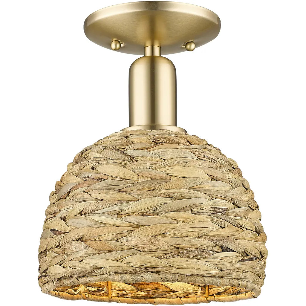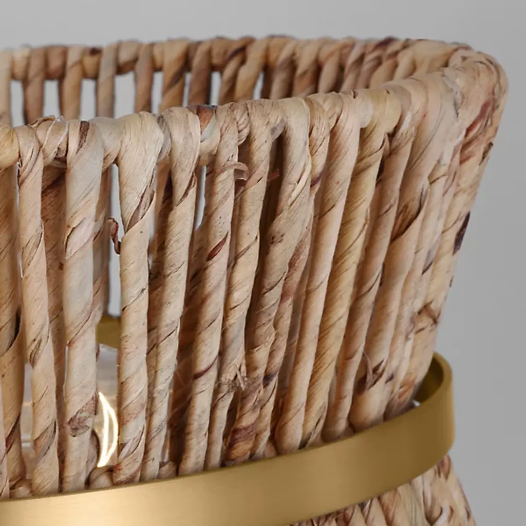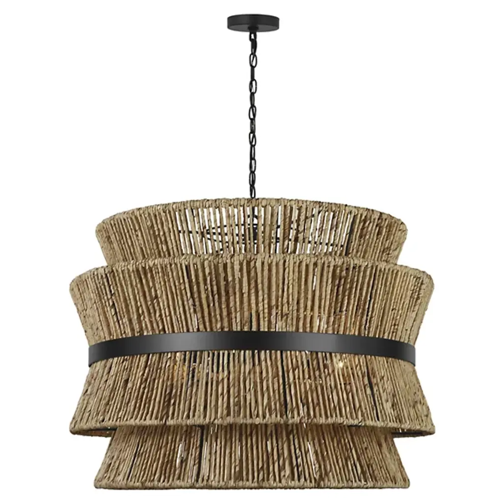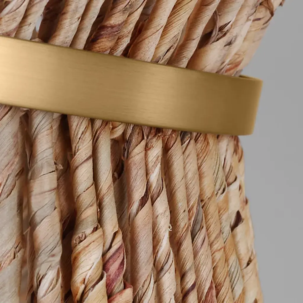 Lend an intricate appeal to inside ceilings with the Thurlo Pendant from Visual Comfort Studio. A clean-surfaced circular canopy extends a fine chain downward to strong lamping placed beneath an hourglass shade of vertically-arranged paper rope. A horizontal metal hoop wraps the center of the shade, confining the rope strands and angling them inward. The vertical rope extends a mix of warm ambiance around direct downlight, creating a stylish bohemian character.