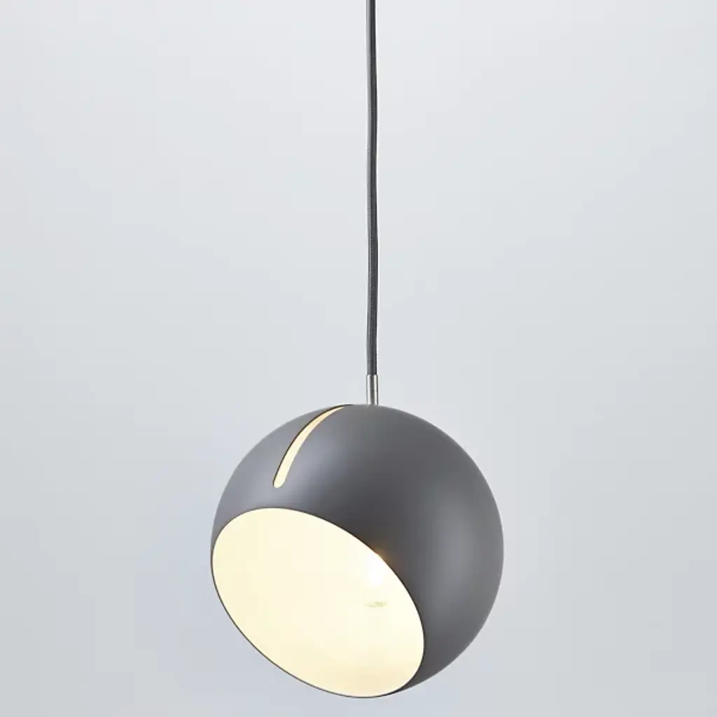 The Nyta Tilt Globe Mini Pendant is a practical and intuitive design that directs light wherever it is needed. The slender opening is the defining element of the design, acting as the mechanism for adjusting the shade. The metal guiding peg easily slides along the oblong track, allowing the fixture to suspend and lock at varying angles. A cumulative 485 degrees of movement is achieved by rotating and tilting the shade, providing stable and hands-on adjustment for the desired lighting effect.