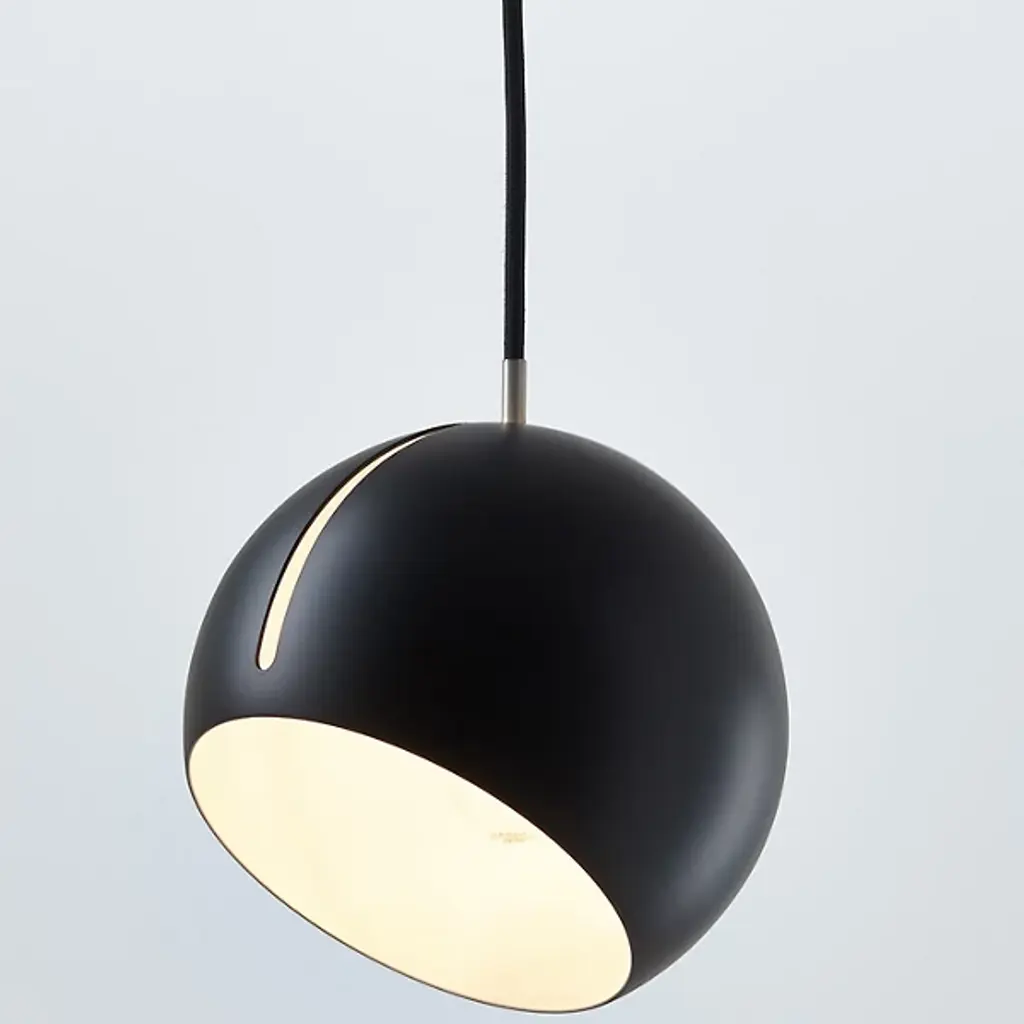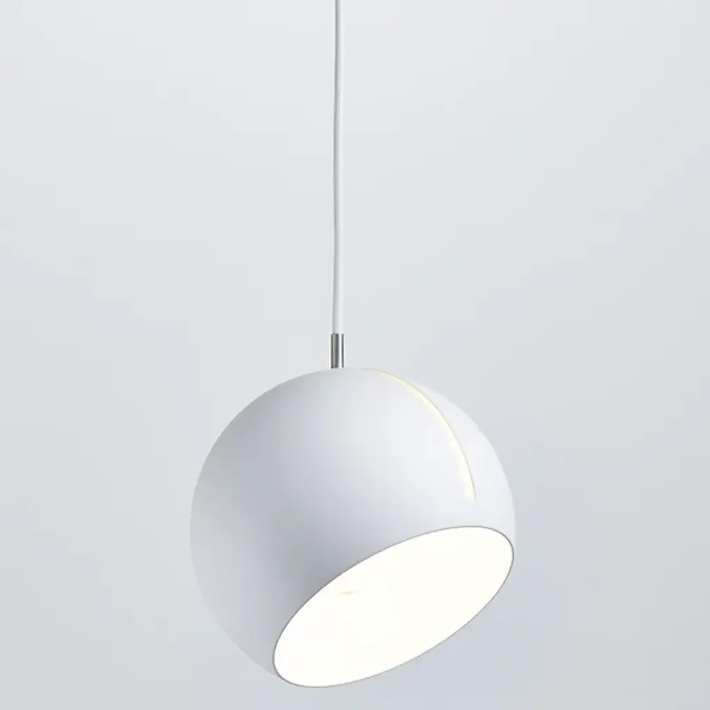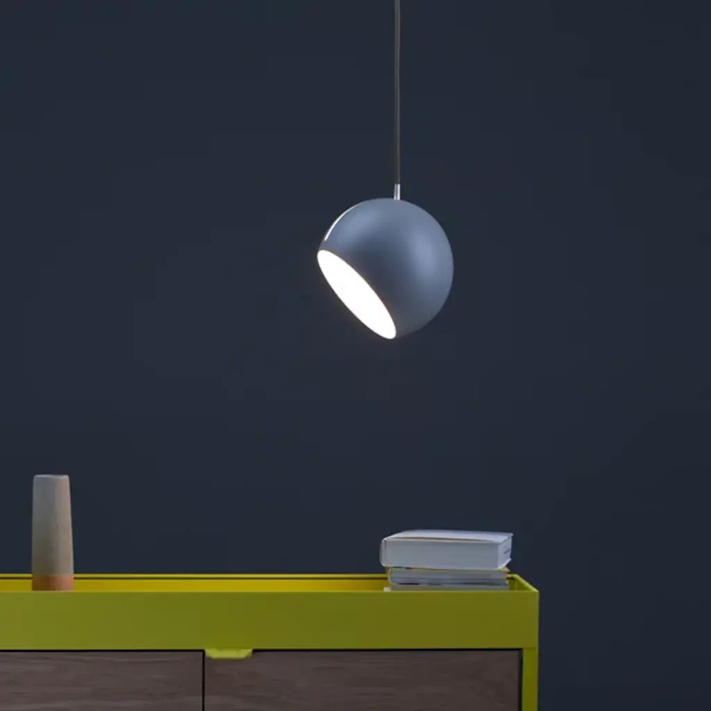 The Nyta Tilt Globe Mini Pendant is a practical and intuitive design that directs light wherever it is needed. The slender opening is the defining element of the design, acting as the mechanism for adjusting the shade. The metal guiding peg easily slides along the oblong track, allowing the fixture to suspend and lock at varying angles. A cumulative 485 degrees of movement is achieved by rotating and tilting the shade, providing stable and hands-on adjustment for the desired lighting effect.