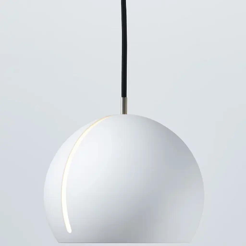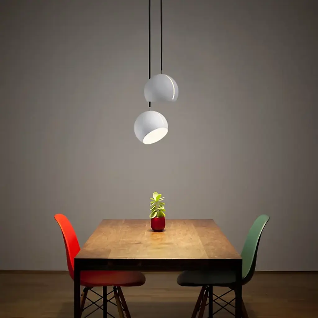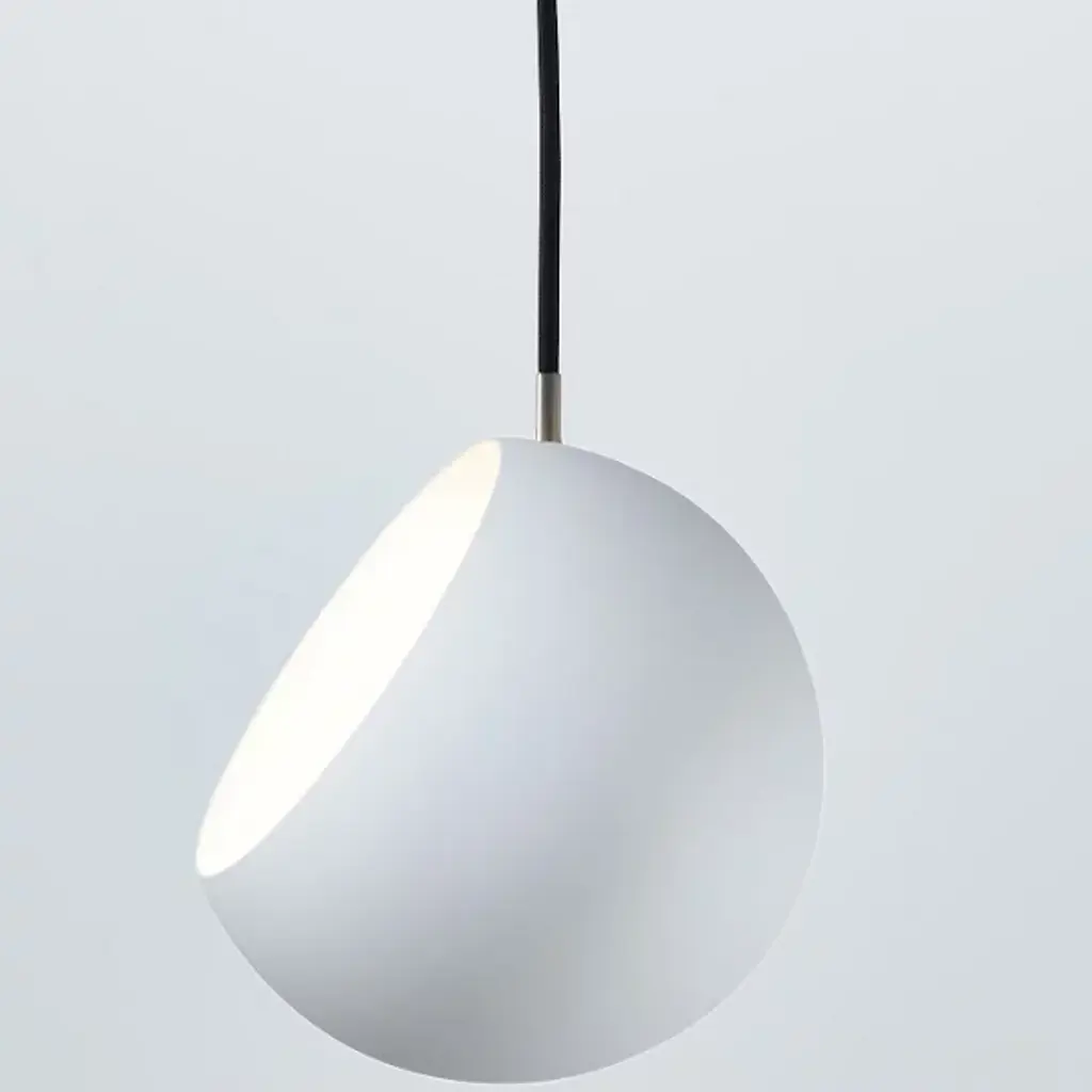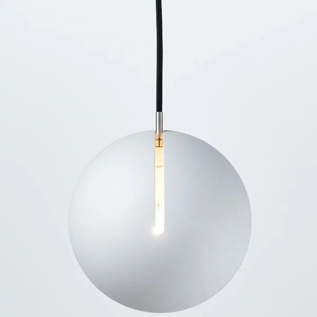 The Nyta Tilt Globe Mini Pendant is a practical and intuitive design that directs light wherever it is needed. The slender opening is the defining element of the design, acting as the mechanism for adjusting the shade. The metal guiding peg easily slides along the oblong track, allowing the fixture to suspend and lock at varying angles. A cumulative 485 degrees of movement is achieved by rotating and tilting the shade, providing stable and hands-on adjustment for the desired lighting effect.