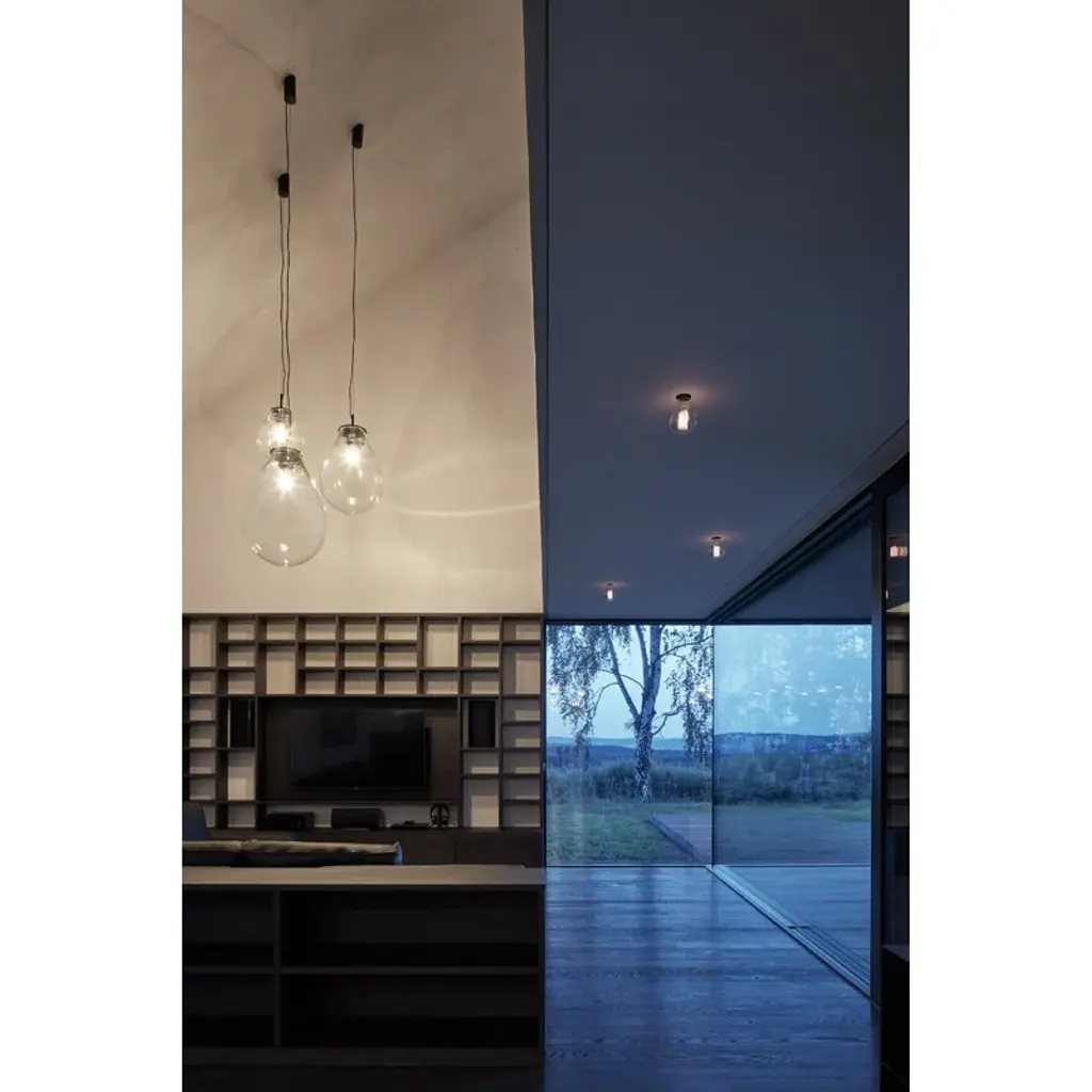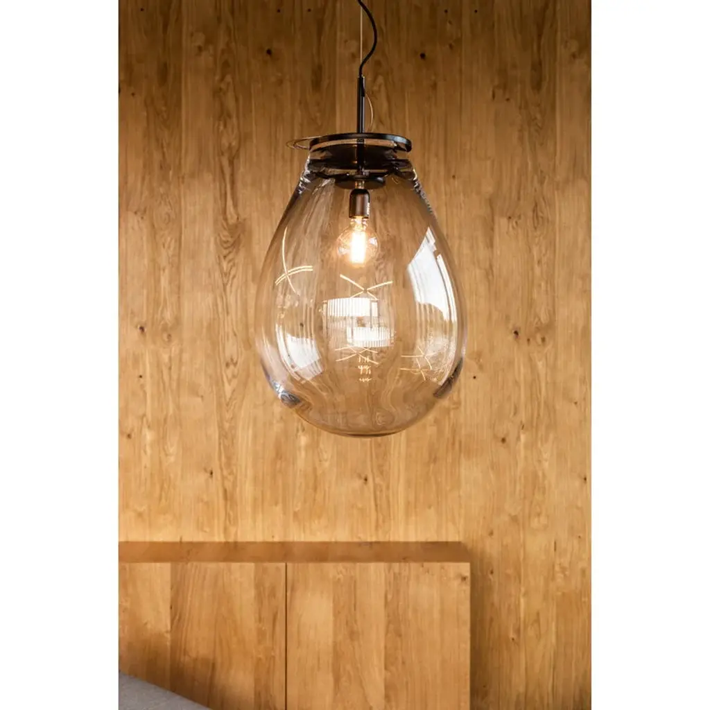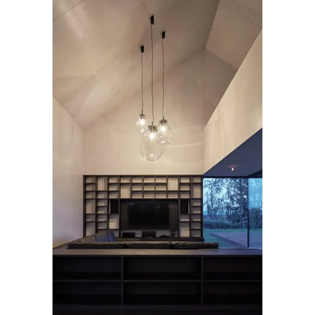 Bomma's Tim pendant light captivates with its striking simplicity and bold presence. The oversized form, contrasted with a small bulb, creates a compelling visual balance, further enhanced by silver-colored steel accents that add depth and harmonious detail. The craftsmanship behind the mouth-blown crystal glass highlights the incredible skill and precision required to achieve such a seemingly effortless design. Whether showcased on its own or as part of a glimmering cluster, the Tim pendant shines as a stunning focal point in any interior. The name "Tim" is a nod to filmmaker Tim Burton, whose distinctive style inspired the Czech design studio Olgoj Chorchoj. With its blend of gothic drama, vivid contrasts and ethereal beauty, the Tim pendant feels perfectly at home in a world of cinematic imagination.