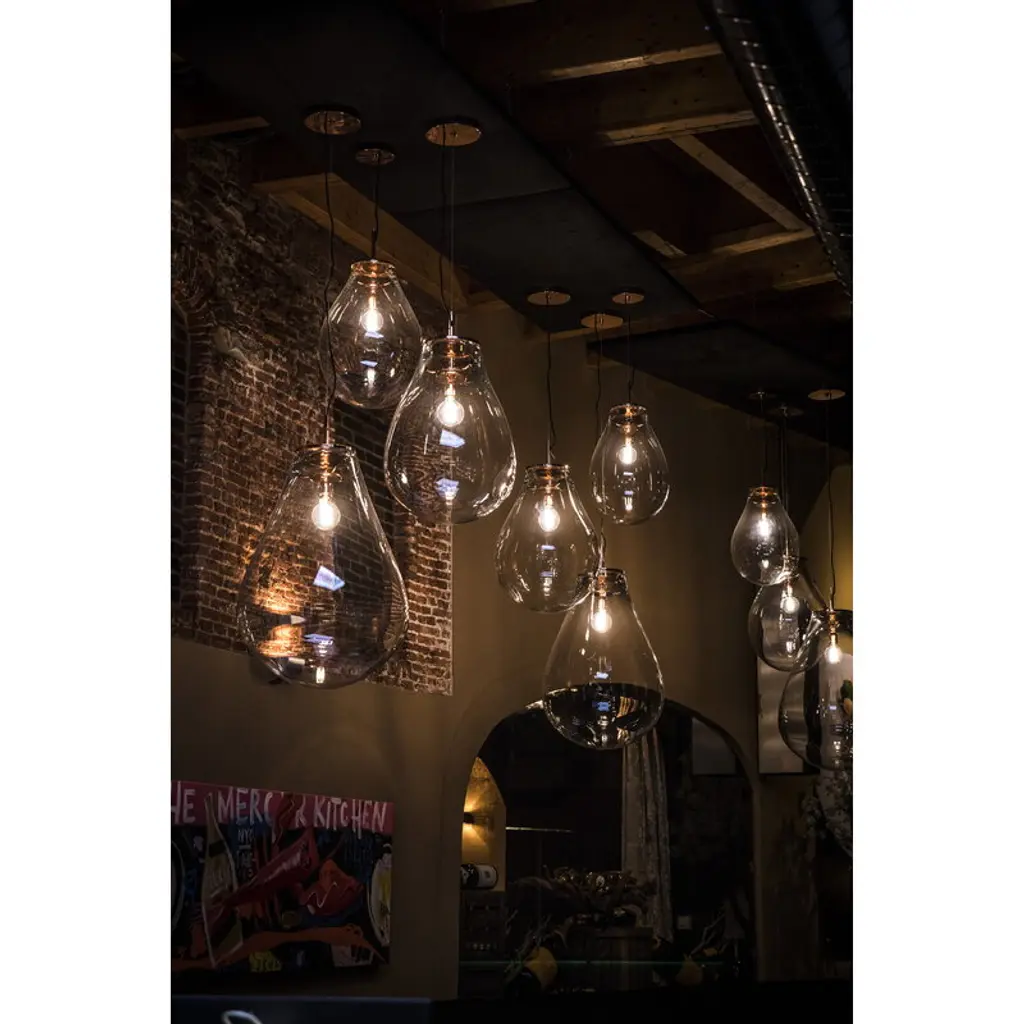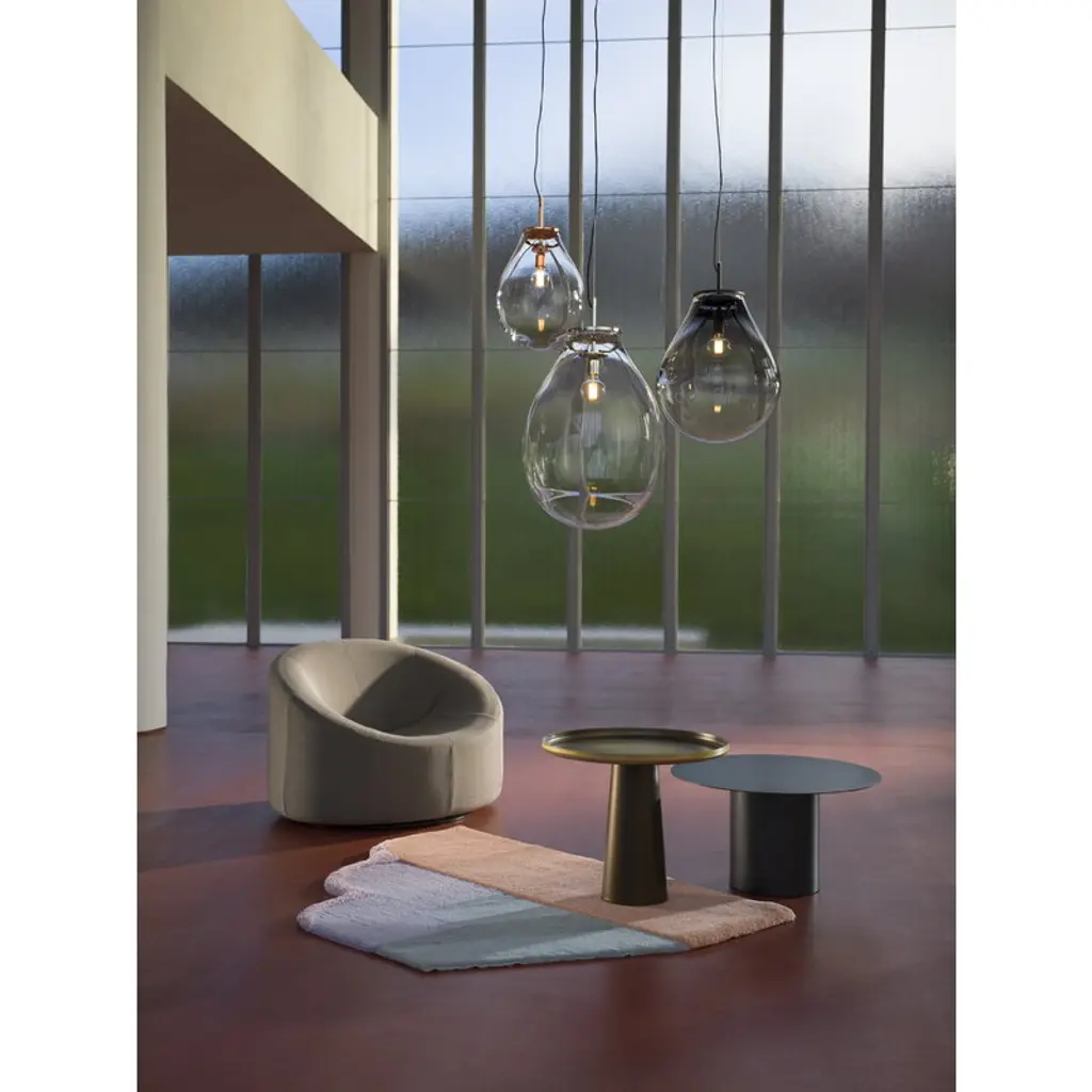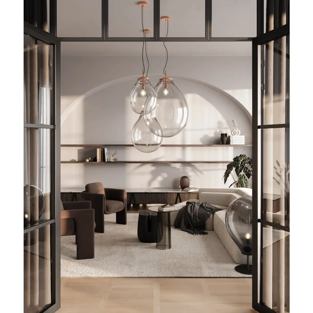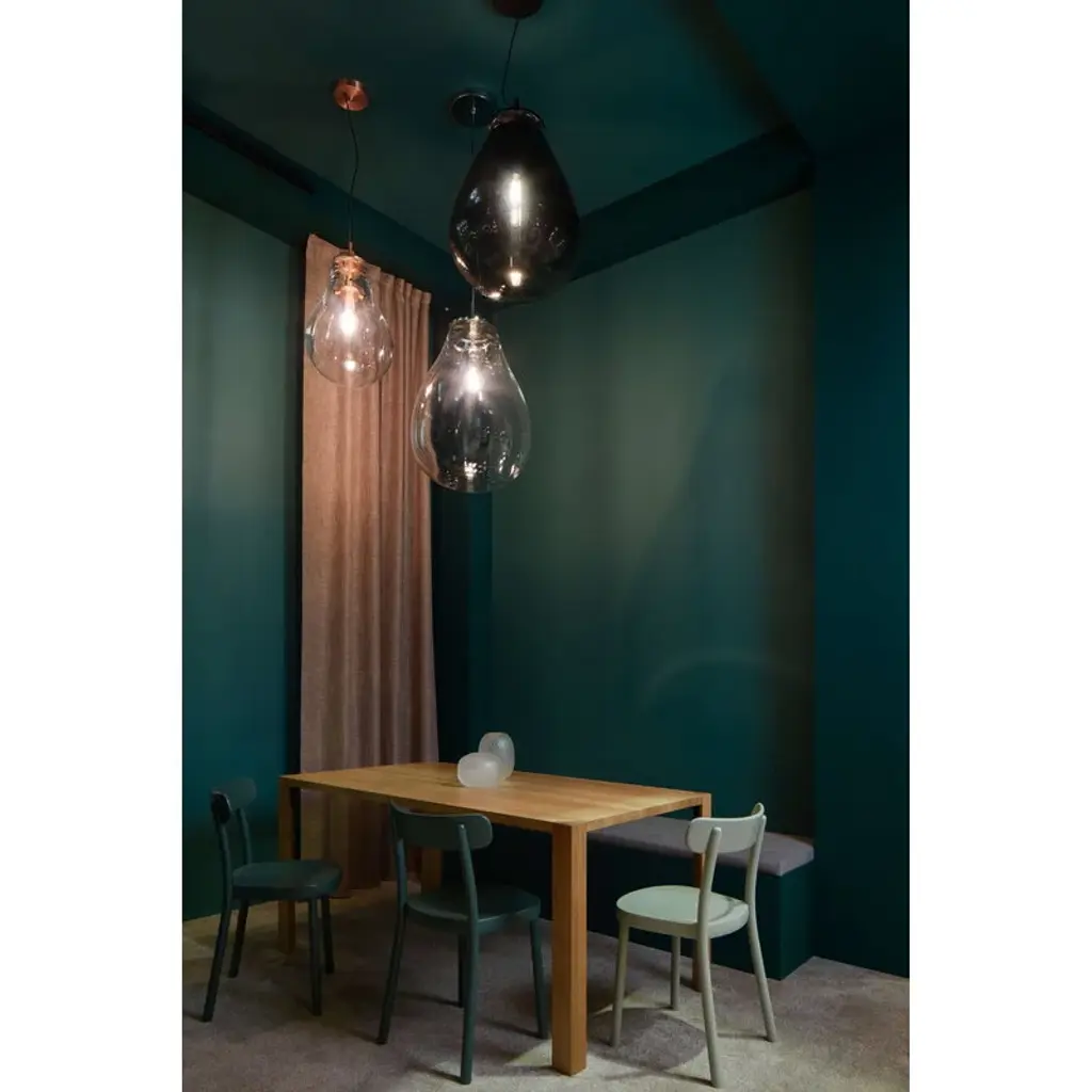 Bomma's Tim pendant light captivates with its striking simplicity and bold presence. The oversized form, contrasted with a small bulb, creates a compelling visual balance, further enhanced by copper accents that add depth and harmonious detail. The craftsmanship behind the mouth-blown crystal glass highlights the incredible skill and precision required to achieve such a seemingly effortless design. Whether showcased on its own or as part of a glimmering cluster, the Tim pendant shines as a stunning focal point in any interior. The name "Tim" is a nod to filmmaker Tim Burton, whose distinctive style inspired the Czech design studio Olgoj Chorchoj. With its blend of gothic drama, vivid contrasts and ethereal beauty, the Tim pendant feels perfectly at home in a world of cinematic imagination.