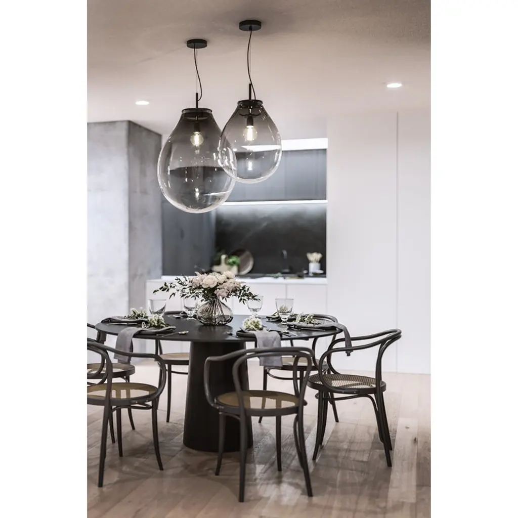 Bomma's Tim pendant light captivates with its striking simplicity and bold presence. The oversized form, contrasted with a small bulb, creates a compelling visual balance, while the expertly applied gradient finish enhances its refined shape. The craftsmanship behind the mouth-blown crystal glass highlights the incredible skill and precision required to achieve such a seemingly effortless design. Whether showcased on its own or as part of a glimmering cluster, the Tim pendant shines as a stunning focal point in any interior. The name "Tim" is a nod to filmmaker Tim Burton, whose distinctive style inspired the Czech design studio Olgoj Chorchoj. With its blend of gothic drama, vivid contrasts and ethereal beauty, the Tim pendant feels perfectly at home in a world of cinematic imagination.