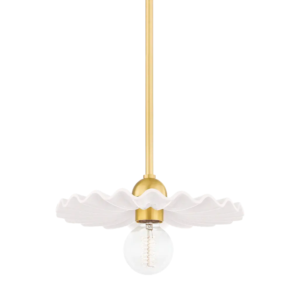 The Tinsley Pendant from Mitzi adds a delightfully feminine touch to your space. The perfect blend of European Minimalism and feminine design, Tinsley is fun, flirty, and functional. The decorative ripples of Tinsley's pleated skirt gently diffuse the light from the clear glass bulb and is accentuated by a finished steel rod extending from the canopy. Take Tinsley for a twirl in the living room, kitchen, dining area or bedroom of your home.