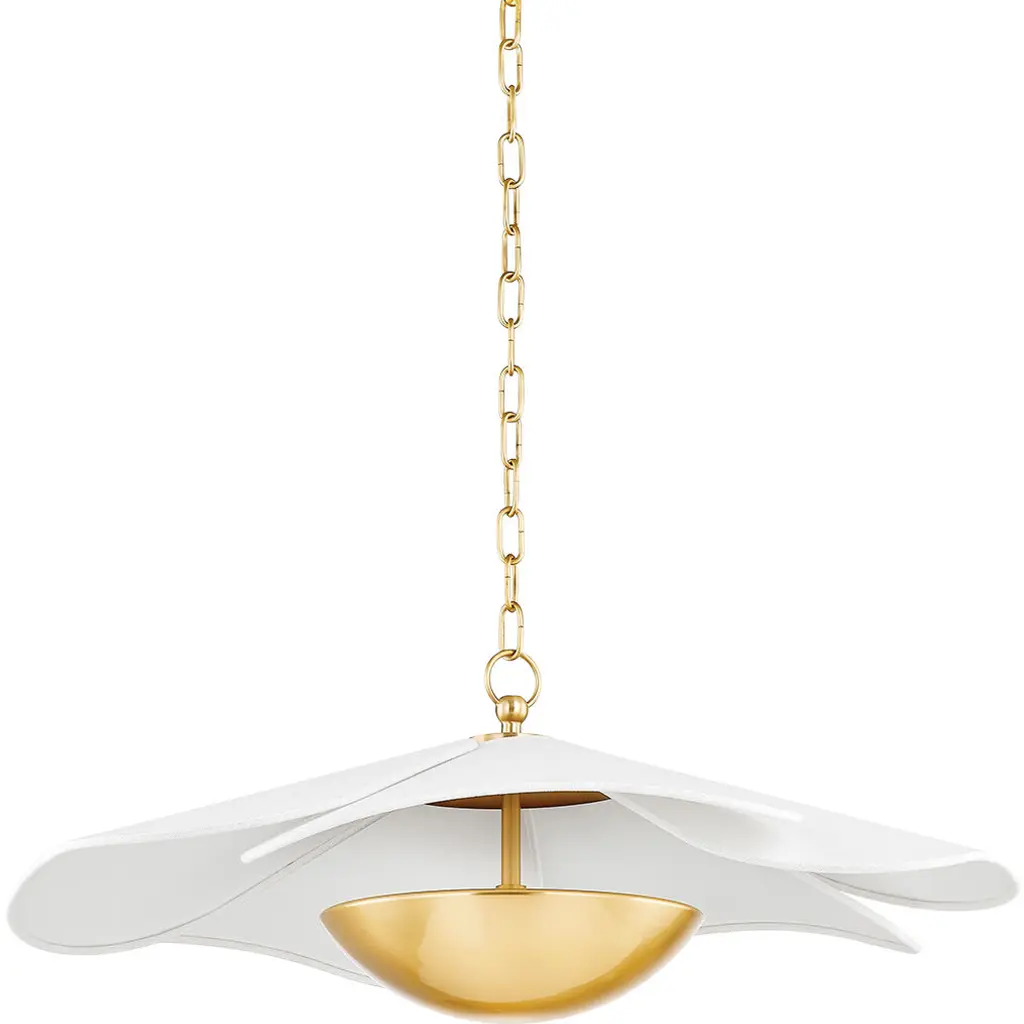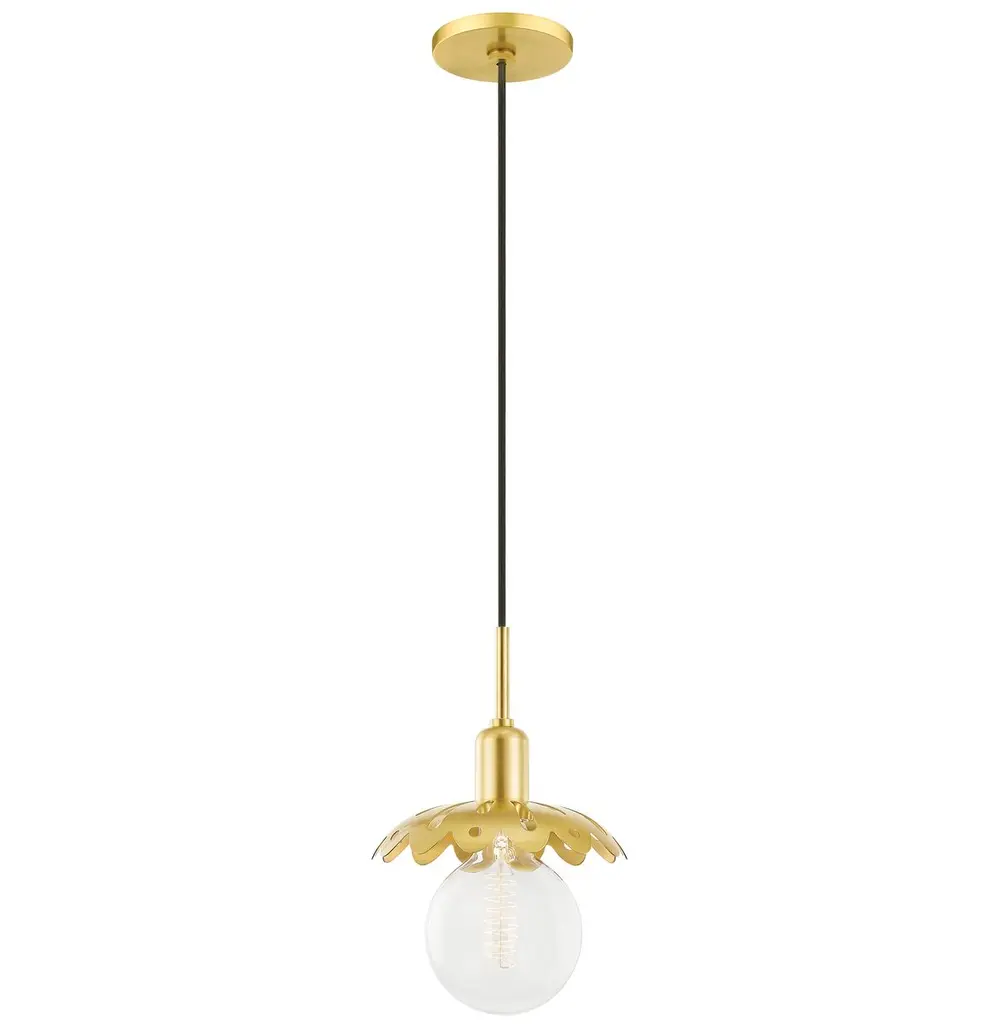 A little wit, a little whimsy, Tinsley brings southern charm with a tinge of sass. Brimming with feminine flair, she's poised to be a new fan favorite. A white ceramic collar flutters effortlessly, offering subtle contrast against the aged brass pipe. An exposed globe bulb finishes off the look, providing direct light over a bar, kitchen island, or really anywhere that could use a little magic.