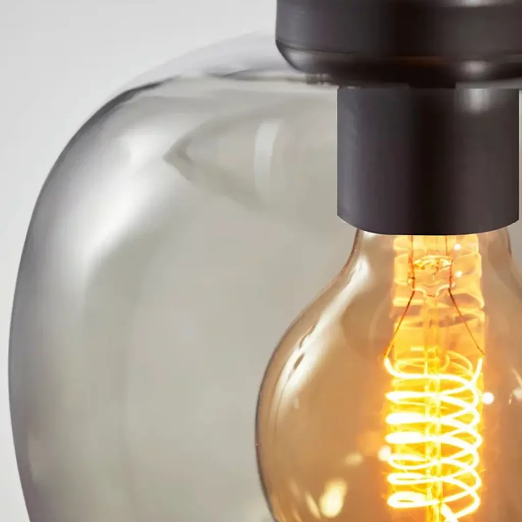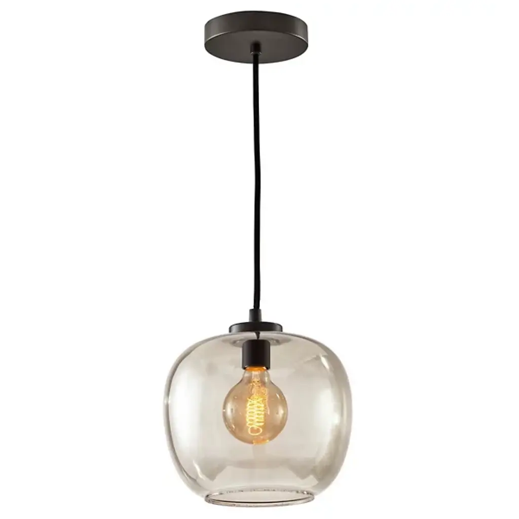 Set the mood with the Tinted Glass Pendant from Adesso. An elegant globe shape defines the shape of a beautiful smoked glass shade, which diffuses the light within to perfection. A matte finish and a fabric-covered cord add a contemporary edge. Buy a few of these and stagger them for a stunning vintage display.