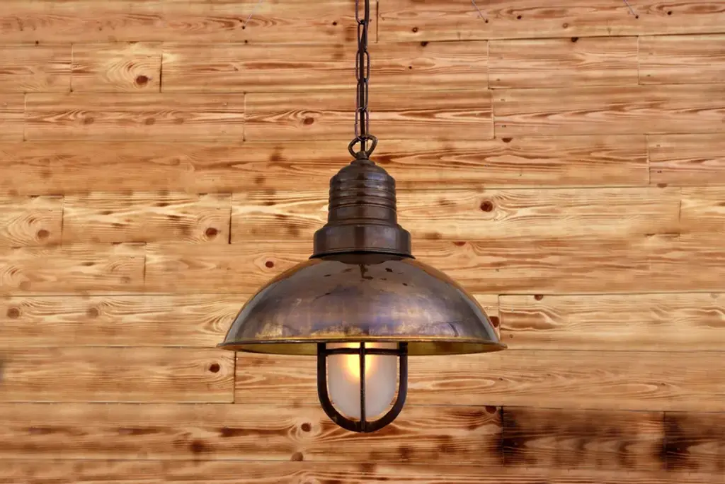 This quality brass and aluminium ship deck pendant is ideal for use in nautical interiors.Material Brass | GlassFlex/Chain Length 100cm | 40”Weight 2.000kgMax Wattage 40wVoltage 220/240vLampholder E27 | Plastic | ES | Edison ScrewIP Rating IP20Ceiling Attachment MLROSE05Glass Code GL144 | GL147 | GL148