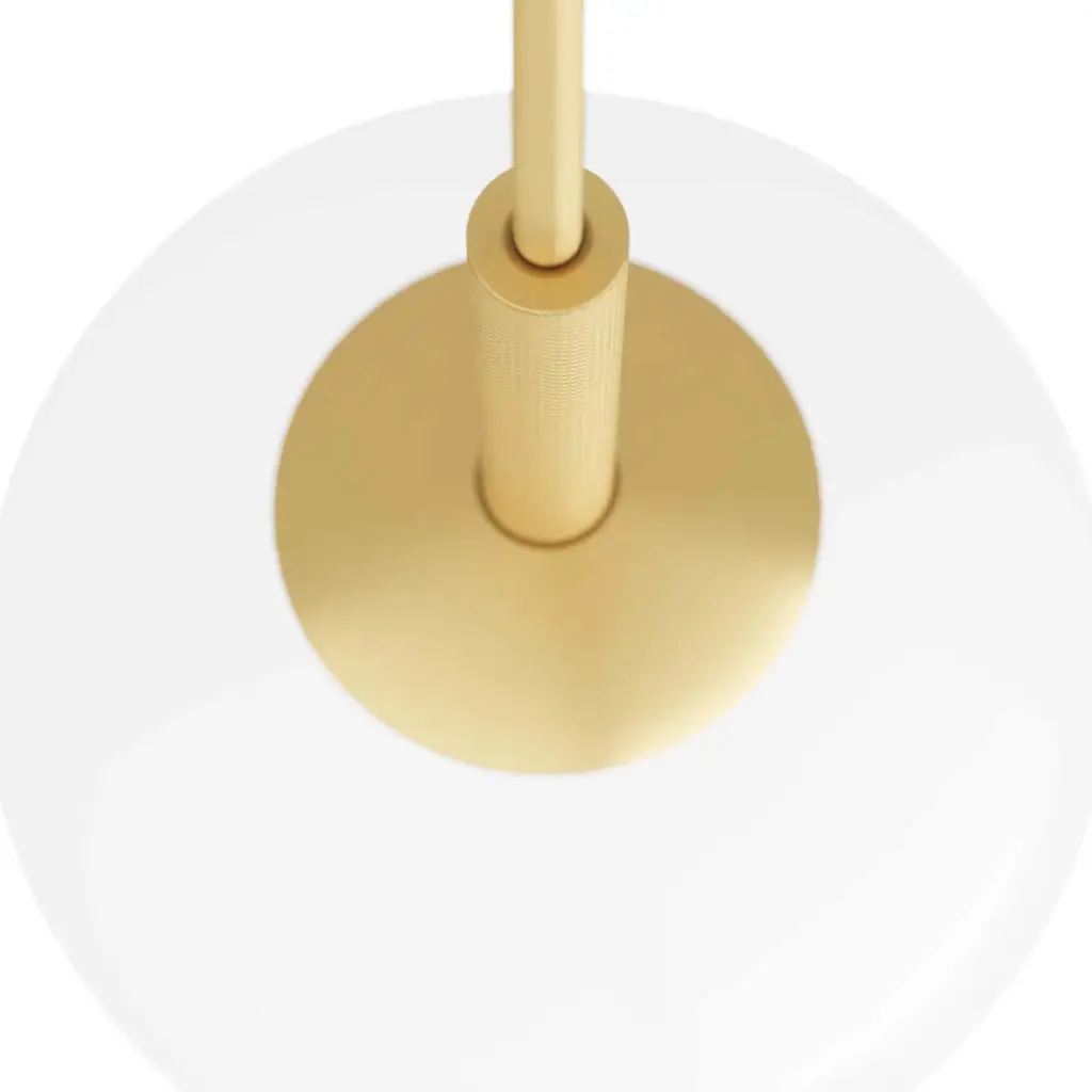Striking in its simplicity, the tirso exudes midcentury style. The integrated led pendant is created with a globe shade in opal glass, which emits a soft glow. A pipe suspension, in antique-brass finished steel with knurled detailing, creates a piercing effect. The fixture is fitted with a disc canopy, also in antique brass. Damp-rated, although limited covered outdoor conditions may affect finish.