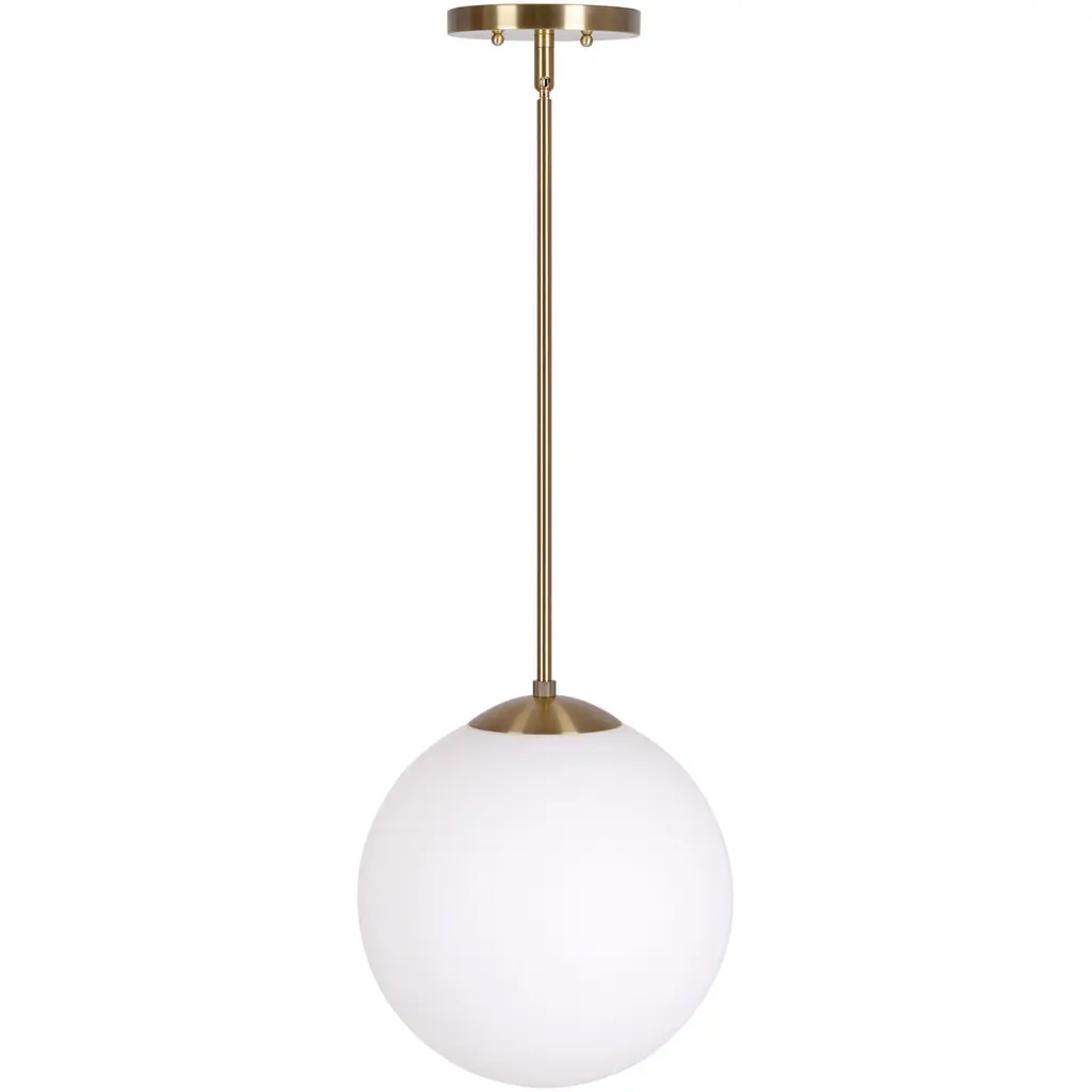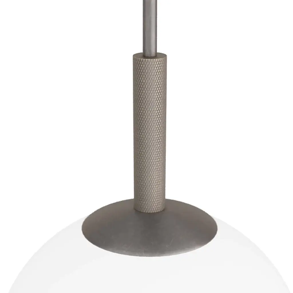 The Tirso LED Pendant by Arteriors is a statement piece, offering a simple yet elegant design inspired by midcentury modern style. The integrated LED pendant emits a soft glow from behind the opaque glass, creating a relaxed and inviting atmosphere. The steel pipe suspension with knurled detailing adds a touch of sophistication, and the rounded disc canopy completes the look.
