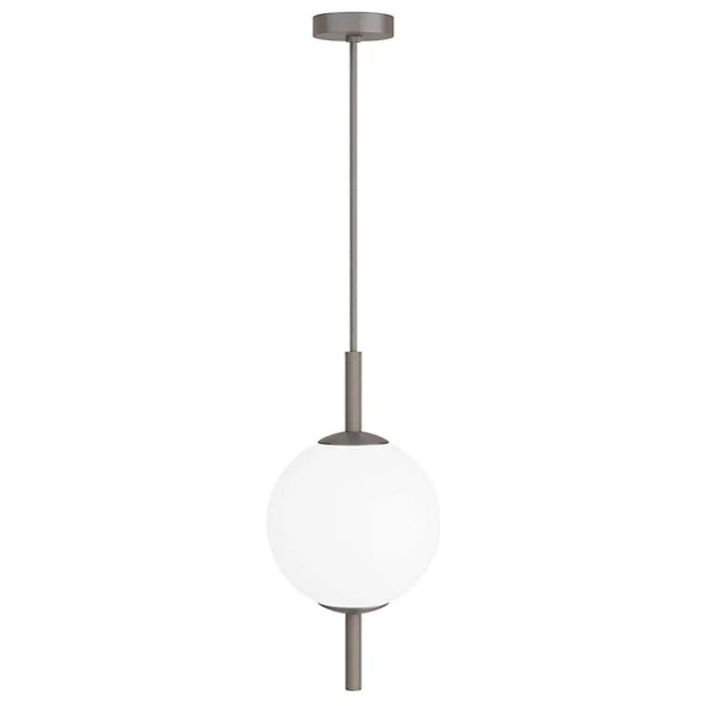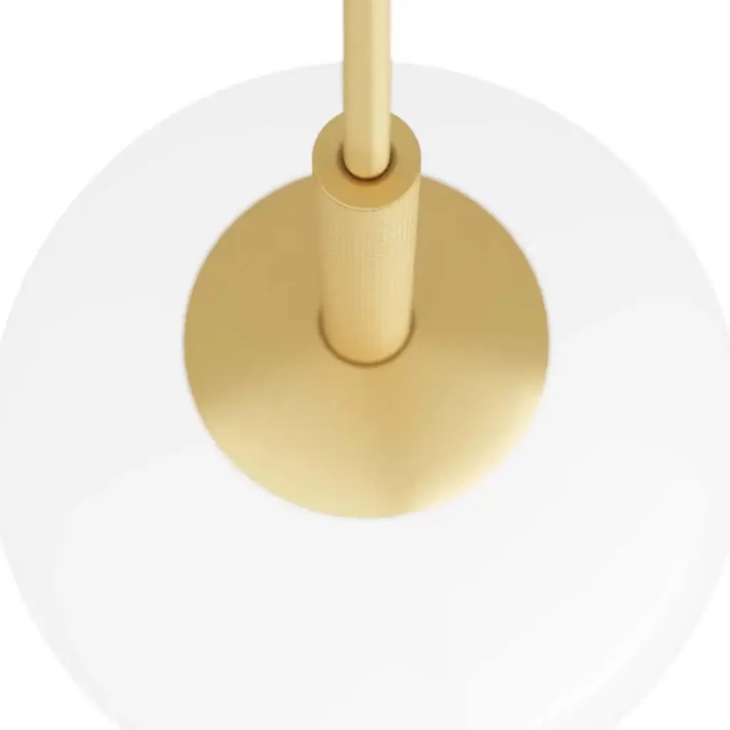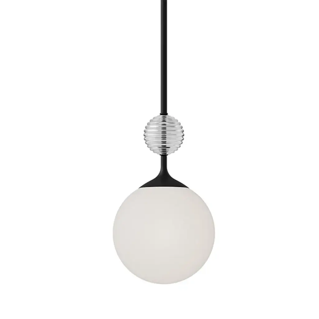 The Tirso LED Pendant by Arteriors is a statement piece, offering a simple yet elegant design inspired by midcentury modern style. The integrated LED pendant emits a soft glow from behind the opaque glass, creating a relaxed and inviting atmosphere. The steel pipe suspension with knurled detailing adds a touch of sophistication, and the rounded disc canopy completes the look.