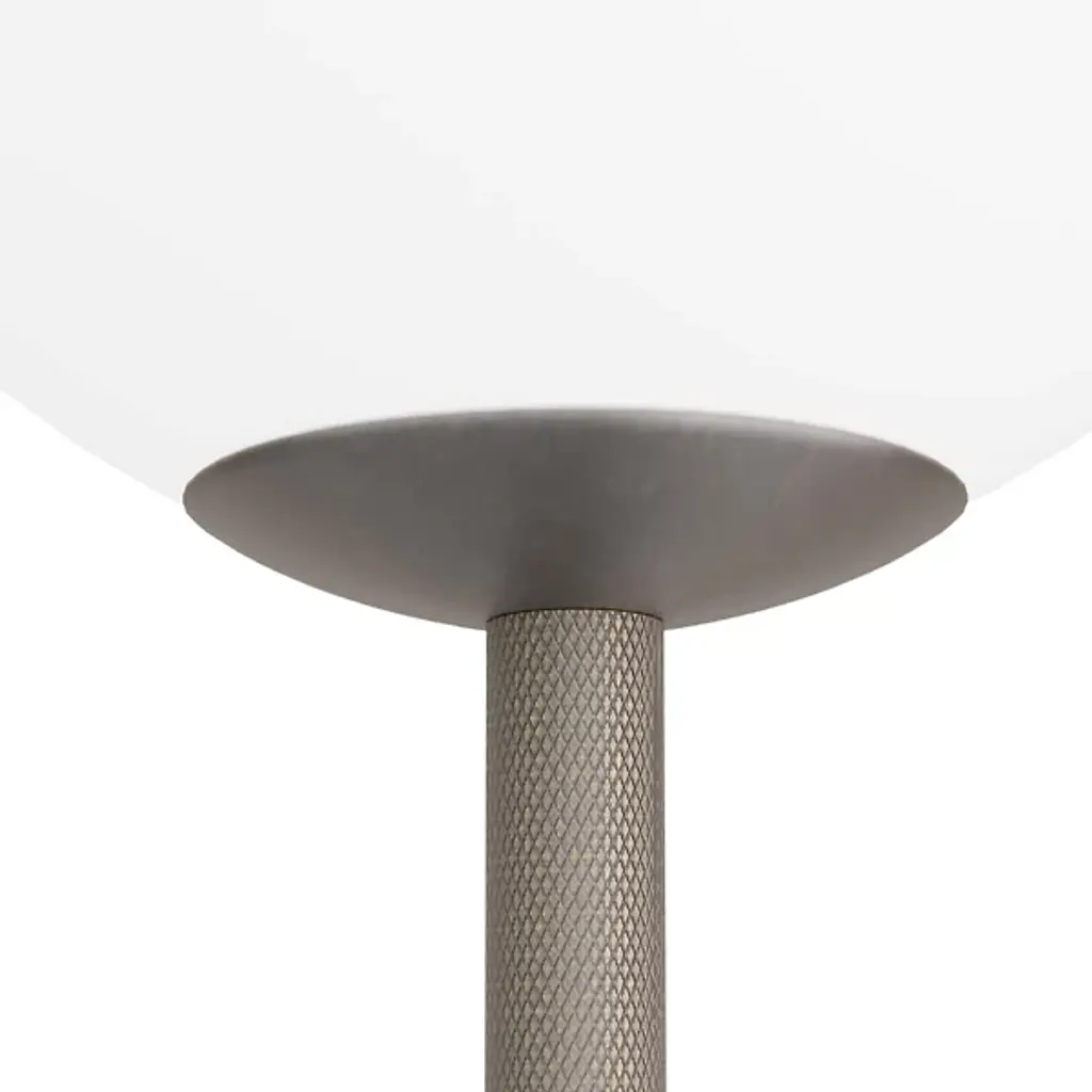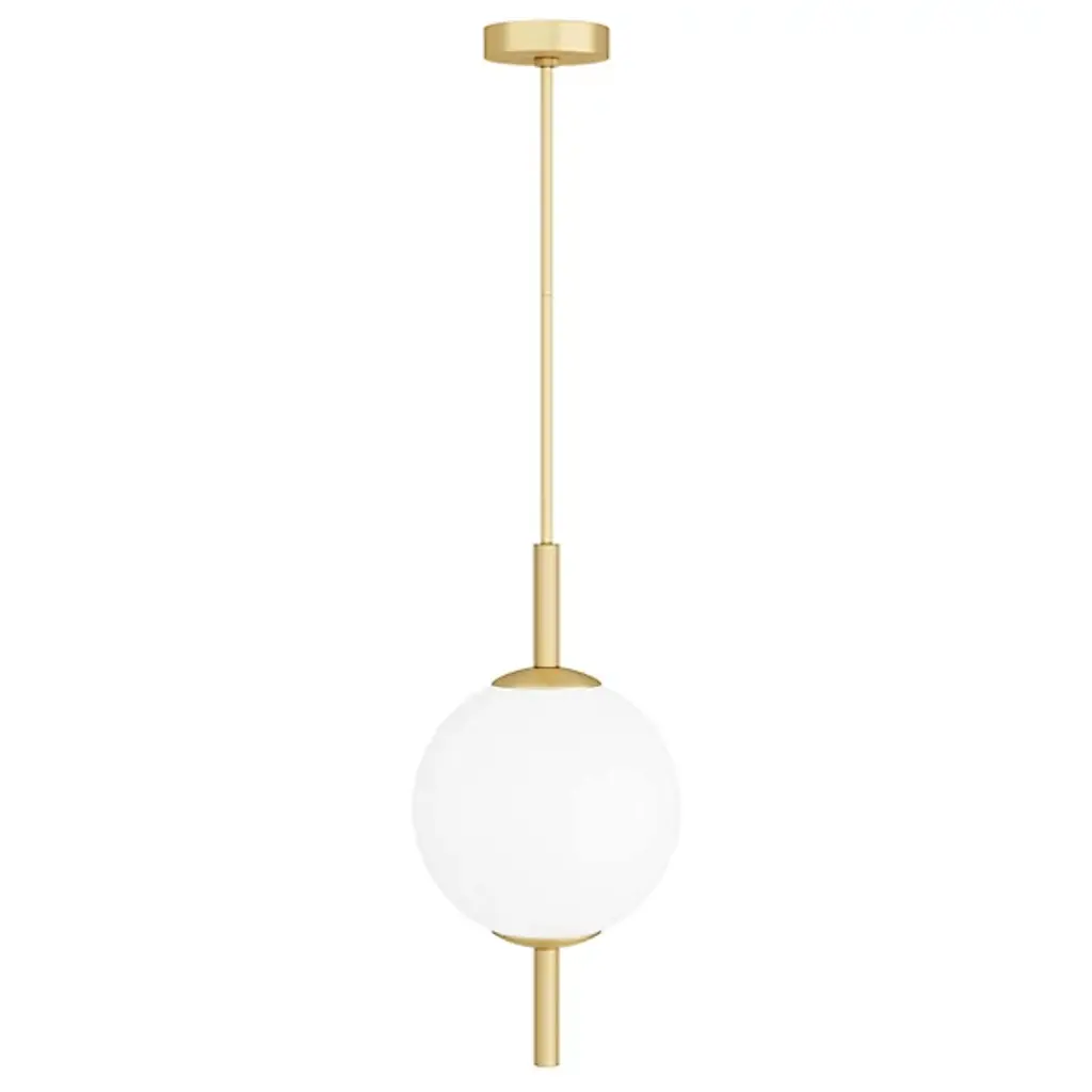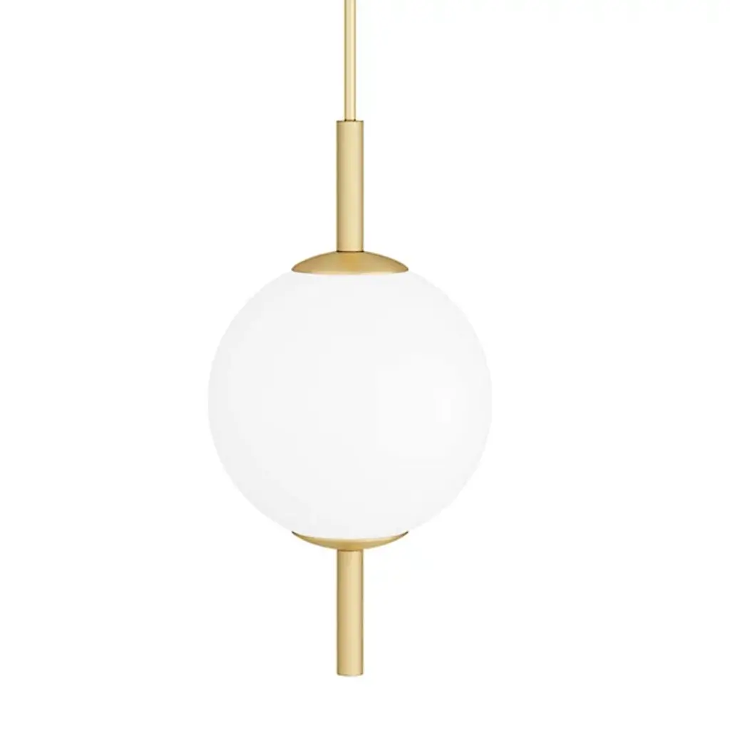 The Tirso LED Pendant by Arteriors is a statement piece, offering a simple yet elegant design inspired by midcentury modern style. The integrated LED pendant emits a soft glow from behind the opaque glass, creating a relaxed and inviting atmosphere. The steel pipe suspension with knurled detailing adds a touch of sophistication, and the rounded disc canopy completes the look.