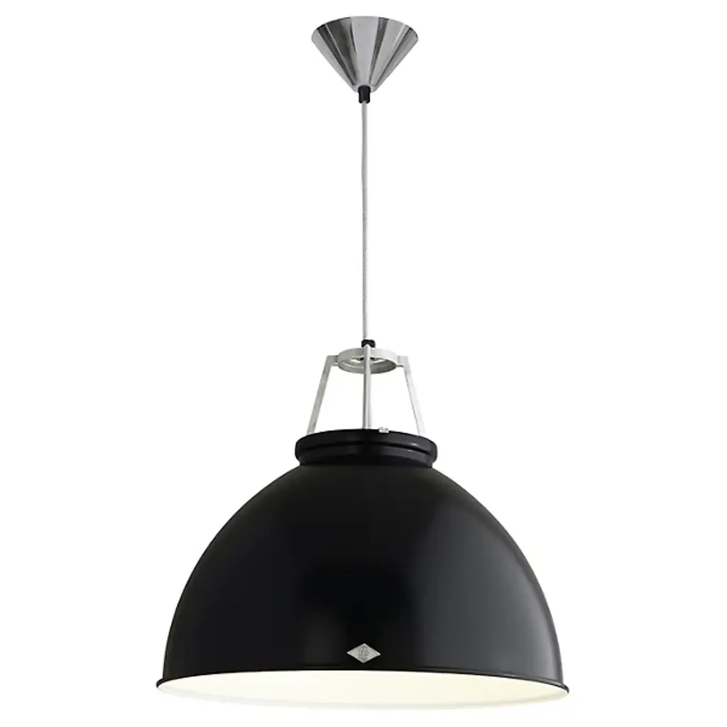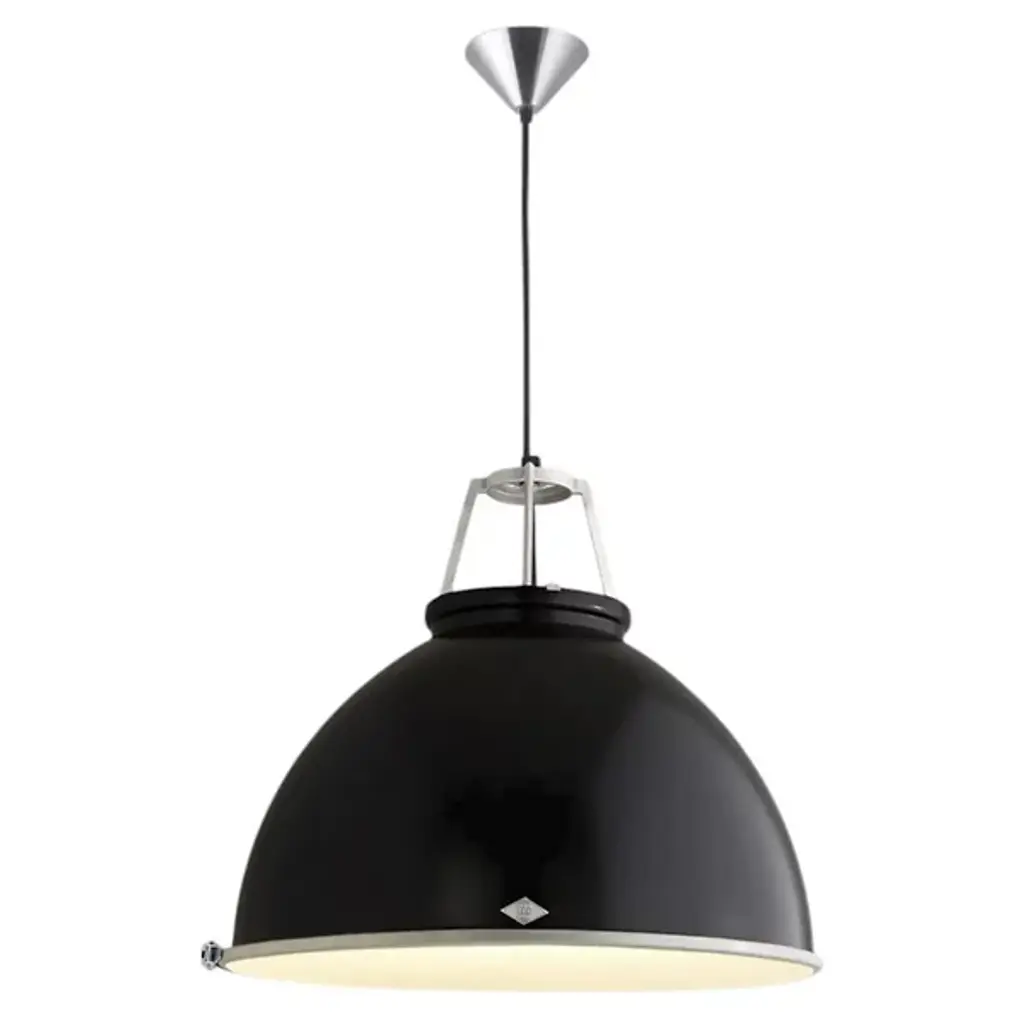 Inspired by an original 1940s design, the Titan 5 Pendant from Original BTC recalls the era's rugged look of factories and industrial units. Equipped with a durable steel-braided cable and contrasting interior colors, each light captures a truly authentic feel. Using time-honored techniques, our spun shades are crafted from sheet metal discs formed through a precise hand-spinning process. Once shaped, the shades are polished, weathered, or powder-coated for a durable, timeless finish, celebrating Davey Lighting's heritage since the 1880s.