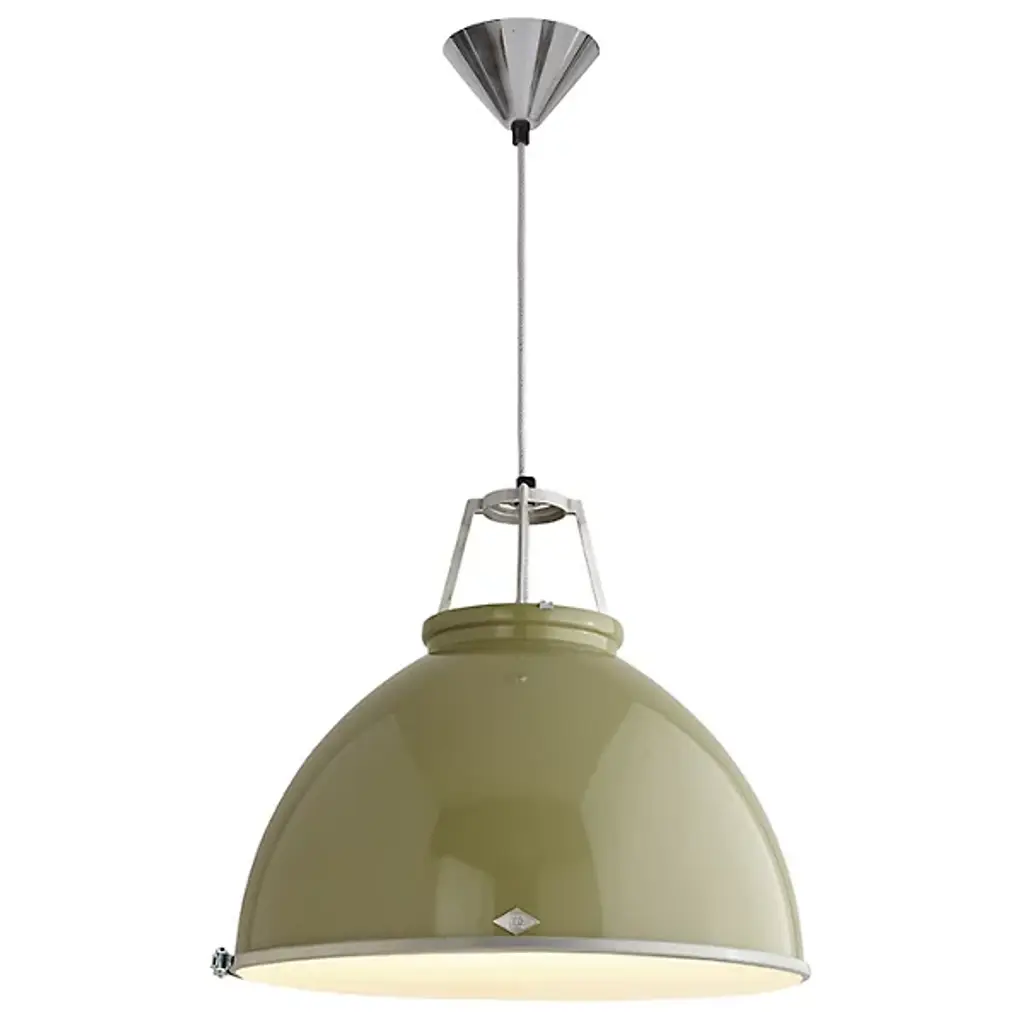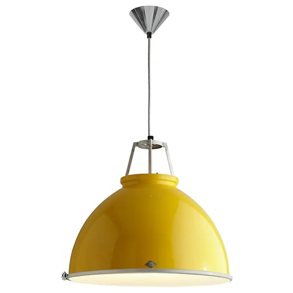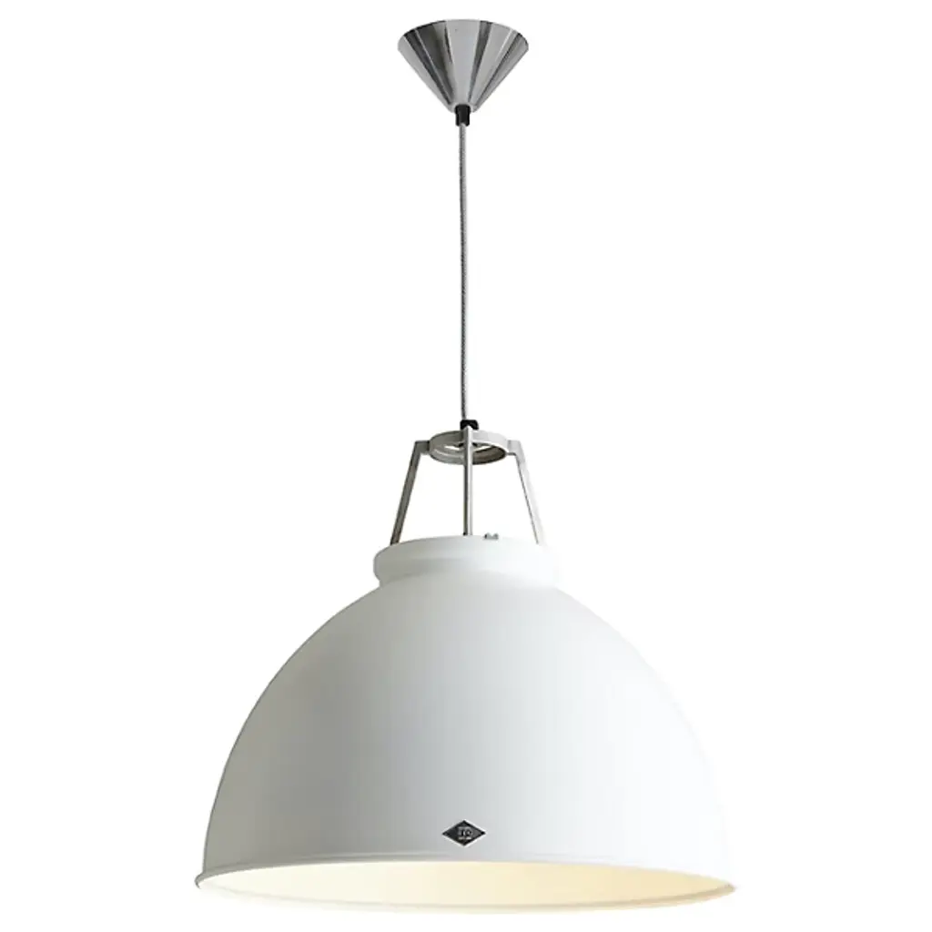 Inspired by an original 1940s design, the Titan 5 Pendant from Original BTC recalls the era's rugged look of factories and industrial units. Equipped with a durable steel-braided cable and contrasting interior colors, each light captures a truly authentic feel. Using time-honored techniques, our spun shades are crafted from sheet metal discs formed through a precise hand-spinning process. Once shaped, the shades are polished, weathered, or powder-coated for a durable, timeless finish, celebrating Davey Lighting's heritage since the 1880s.