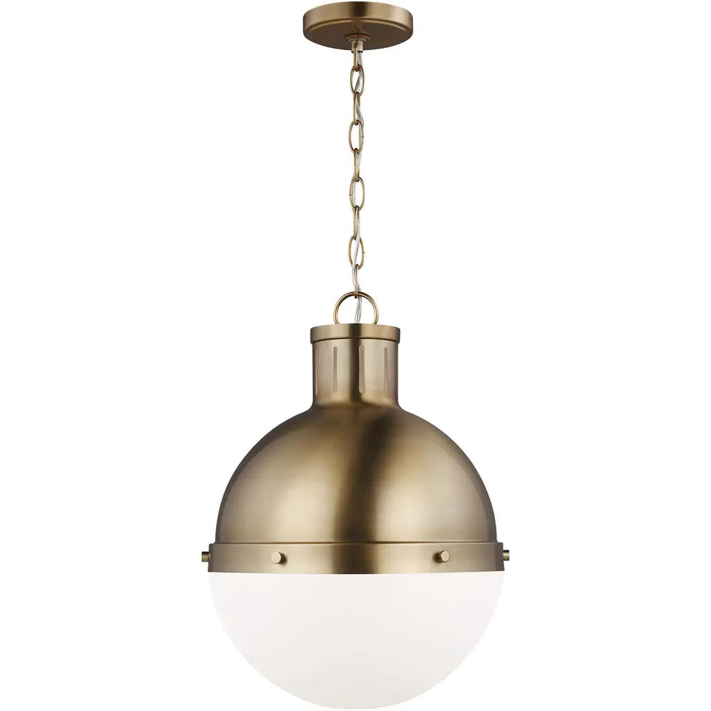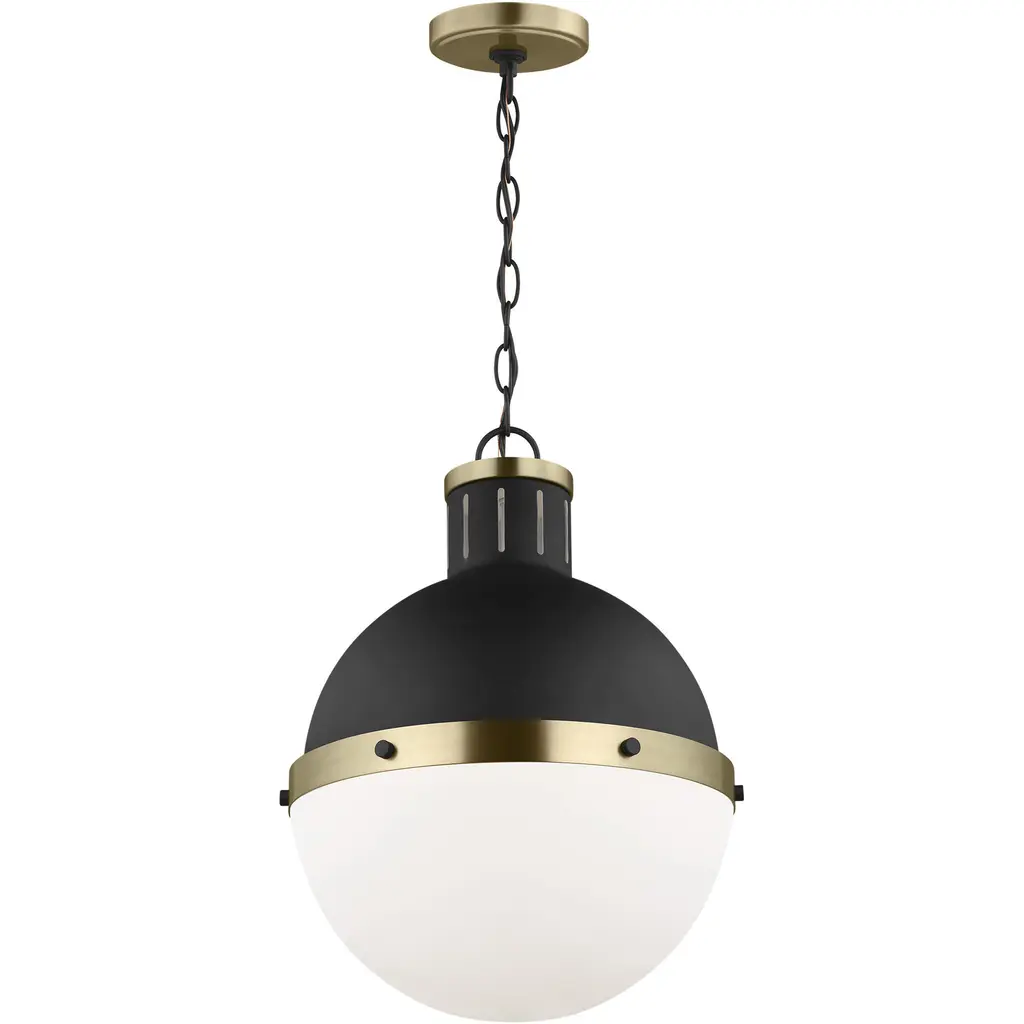 The Hanks medium modern pendant is offered in the Midnight Black/Satin Bronze, Antique Brushed Nickel, Satin Bronze, or Brushed Nickel finish. This globe style pendant is crafted with an antique finish and white glass shade, offering an approachable style with direct lighting. The multiple use of color and finishes exude mid-century modern style to help entice any updated space.