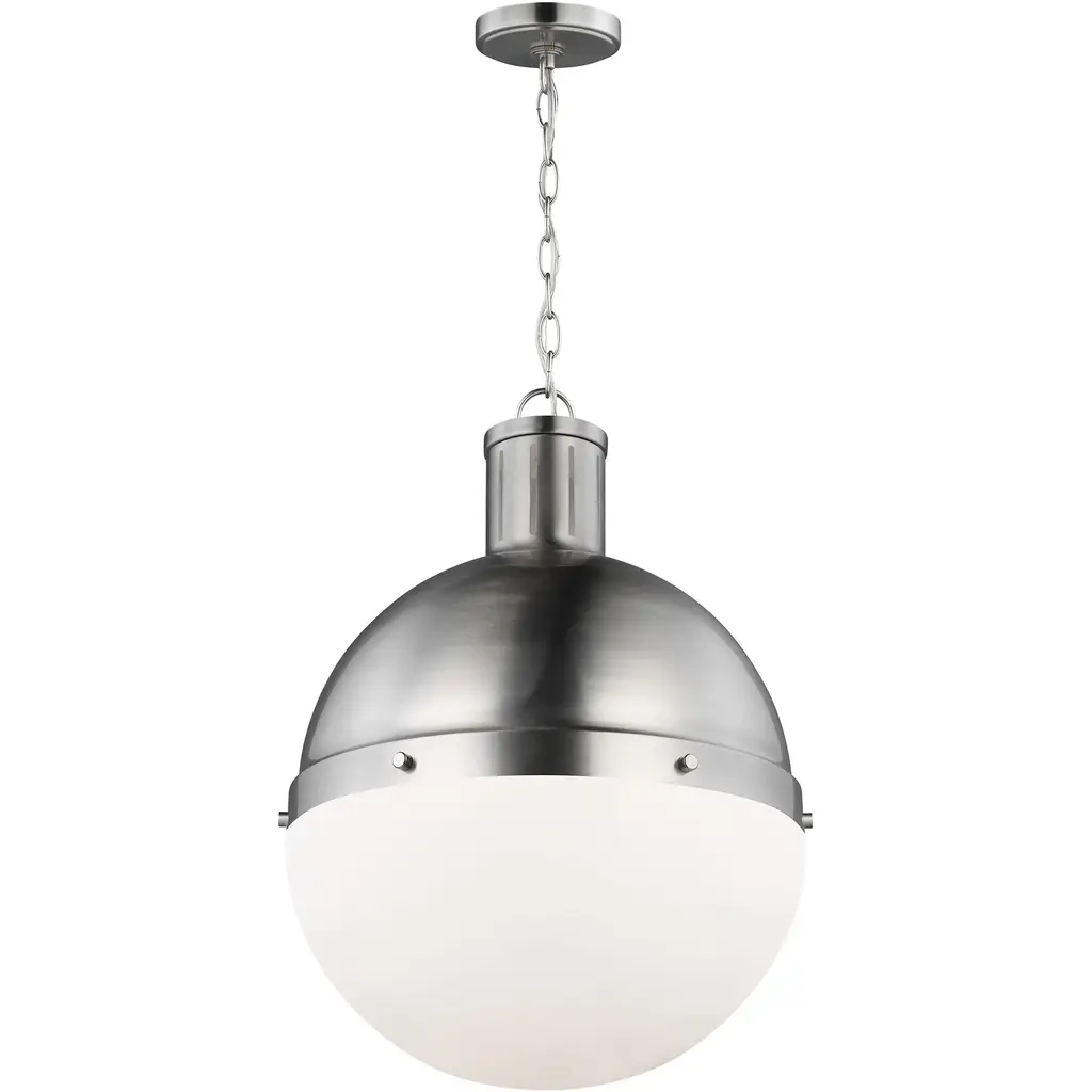 The Hanks medium modern pendant is offered in the Midnight Black/Satin Bronze, Antique Brushed Nickel, Satin Bronze, or Brushed Nickel finish. This globe style pendant is crafted with an antique finish and white glass shade, offering an approachable style with direct lighting. The multiple use of color and finishes exude mid-century modern style to help entice any updated space.
