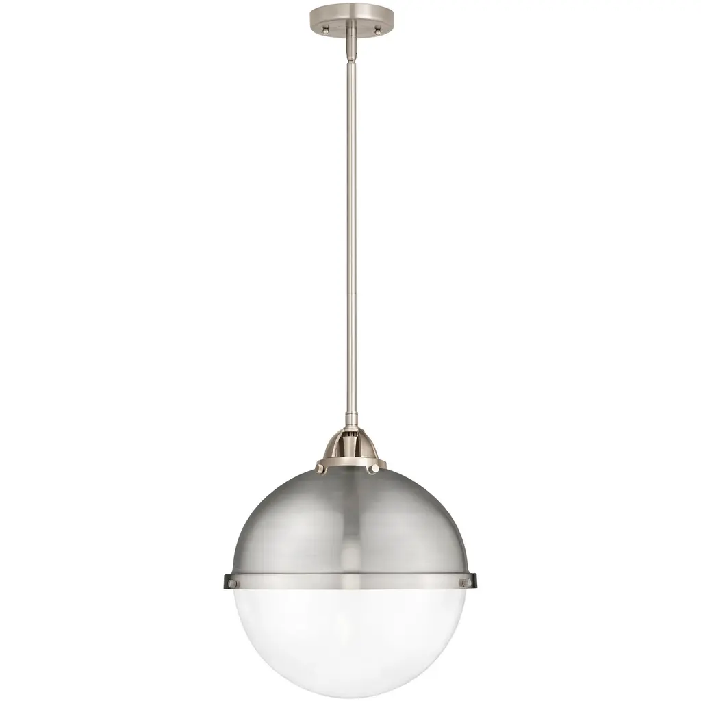 The Hanks medium modern pendant is offered in the Midnight Black/Satin Bronze, Antique Brushed Nickel, Satin Bronze, or Brushed Nickel finish. This globe style pendant is crafted with an antique finish and white glass shade, offering an approachable style with direct lighting. The multiple use of color and finishes exude mid-century modern style to help entice any updated space.