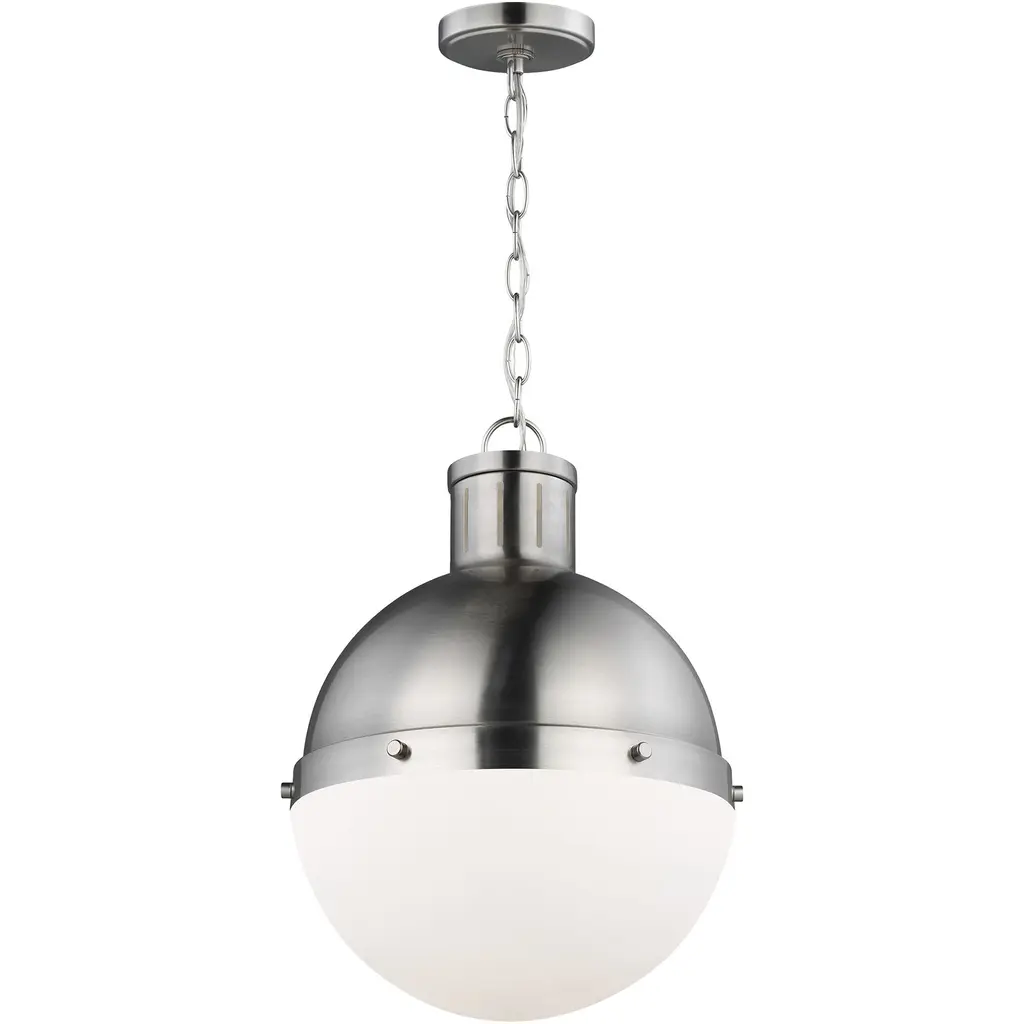 The Hanks medium modern pendant is offered in the Midnight Black/Satin Bronze, Antique Brushed Nickel, Satin Bronze, or Brushed Nickel finish. This globe style pendant is crafted with an antique finish and white glass shade, offering an approachable style with direct lighting. The multiple use of color and finishes exude mid-century modern style to help entice any updated space.