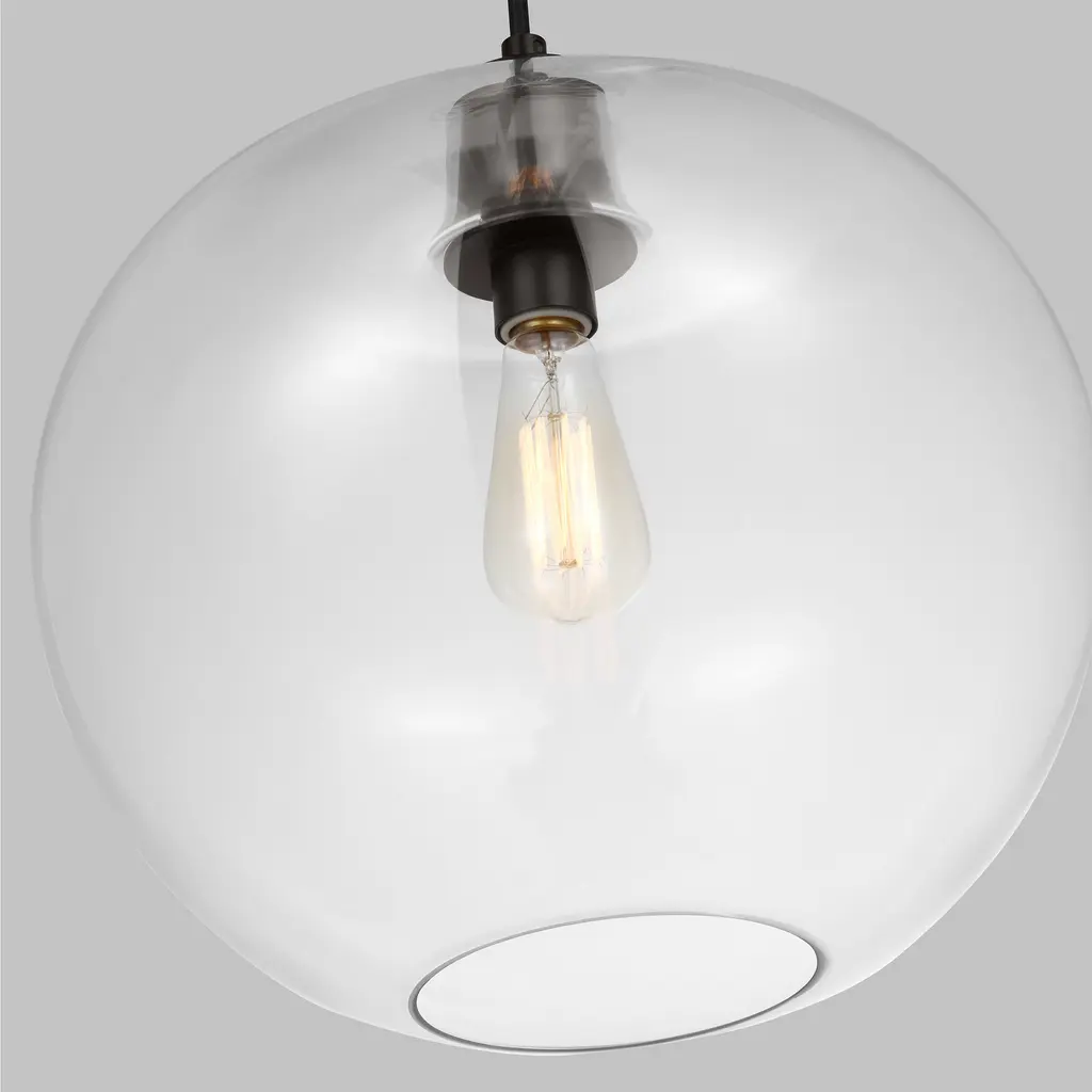 Taking its name and shape from the meaning of apple in Italian. The Mela Pendants, designed by Thomas O'Brien, are part of a group of new modern organic shapes. It started with a hand-blown bottle vase with an apple–like shape. The mix of delicate glass and timeless steel is decidedly modern, with a slight nod to mid-century design.