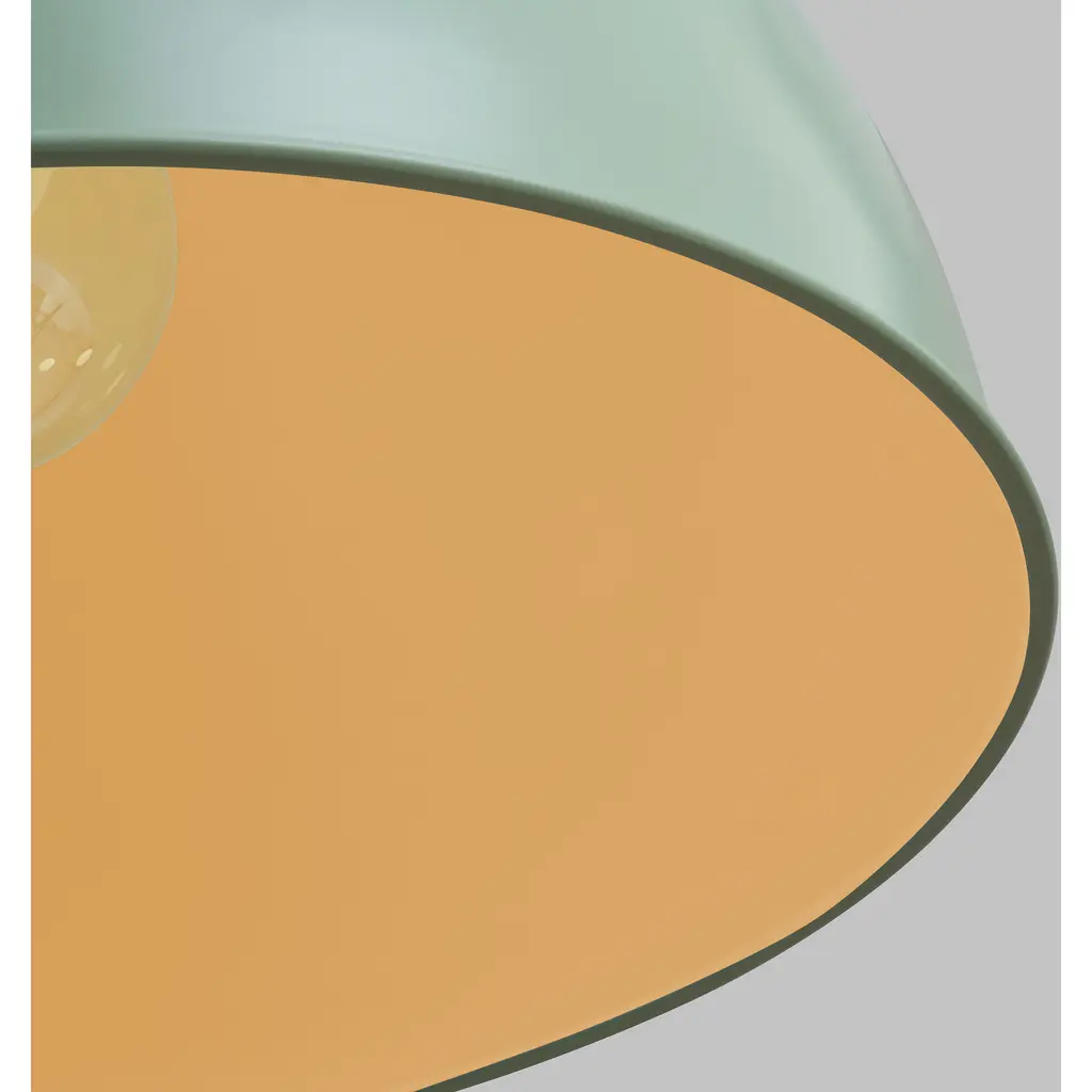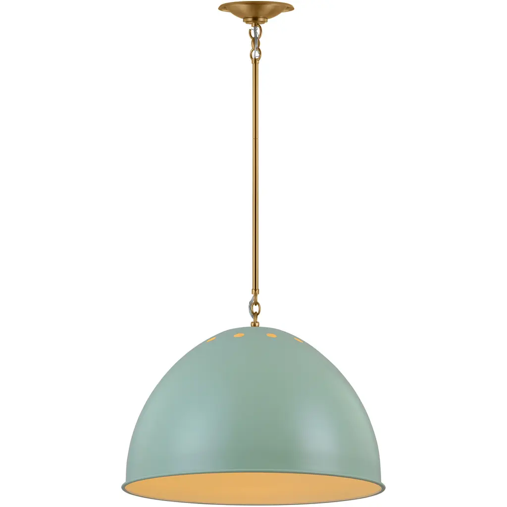 The Robbie pendants are a new enameled industrial metal shade pendant light designed by Thomas O'Brien. Robbie draws inspiration from the vintage factory-style shade with a ring of nice circular holes around the top of the dome. Special new metal fittings enhance this modern interpretation. Industrial-chic perforations along the top rim of the gleaming metal shade add charm to a classic design.