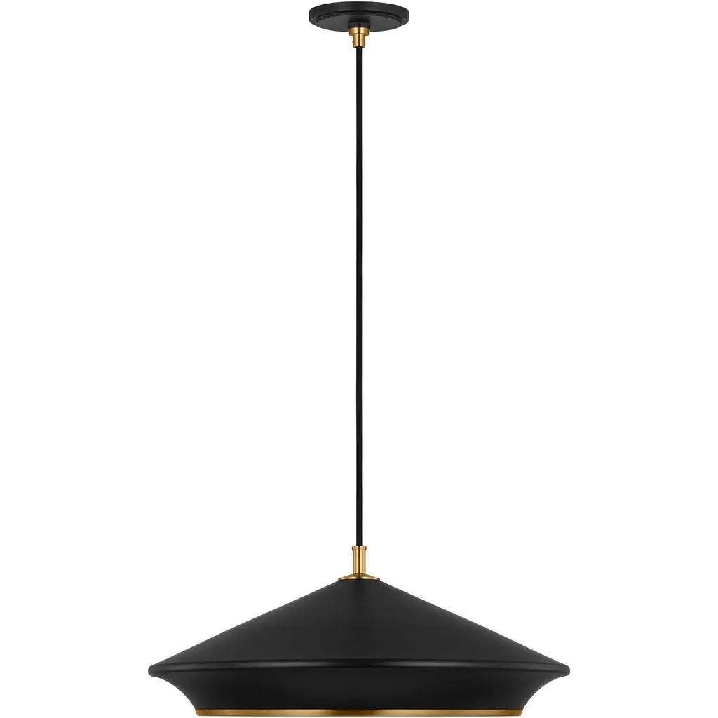 Inspired by mid-century modern designs, the Stanza series is a group of new cone-shaped pendants in light and dark silhouettes with chic accents in brass – trimming them at the top and bottom. Its carefully minimal design brings your eye to the trim, where its burnished Brass finish provides exciting contrast. A matching holder ties it all together. Stanza is a charming pendant series that will bring a touch of retro-modern style to any space.