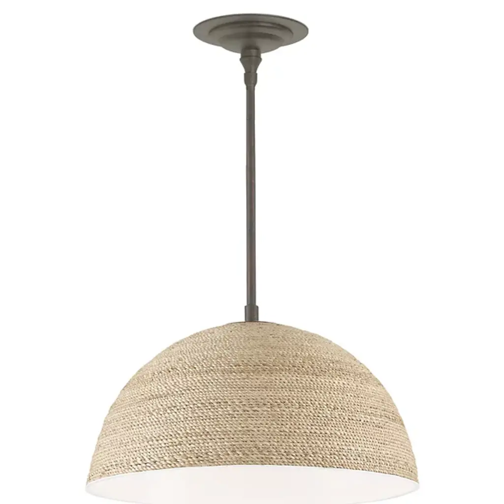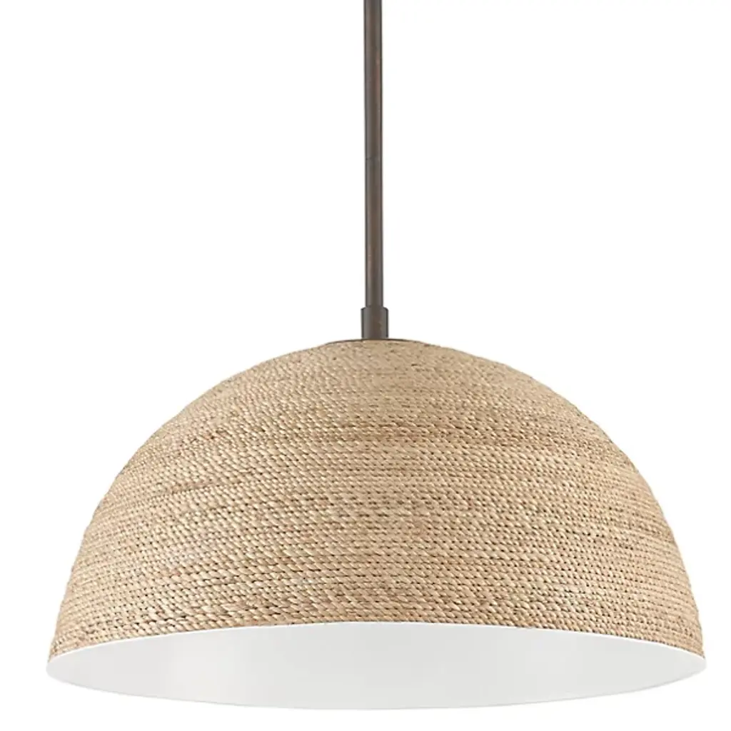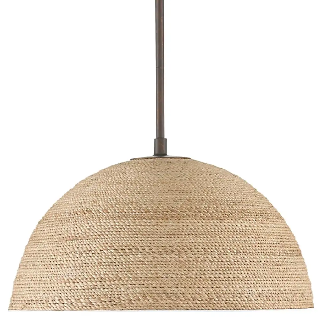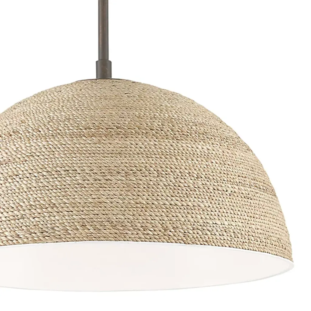 Add a natural touch to the rooms of your modern home with the Tobago Pendant from Currey & Company. Extending from the ceiling with a thin rod body made of smooth, wrought iron, this piece features a dome-shaped abaca rope shade. The minute details on the shade subtly enhance the décor while keeping a single bulb within. The warm light from the bulb fills the shade and enters the room in a welcoming, even manner.