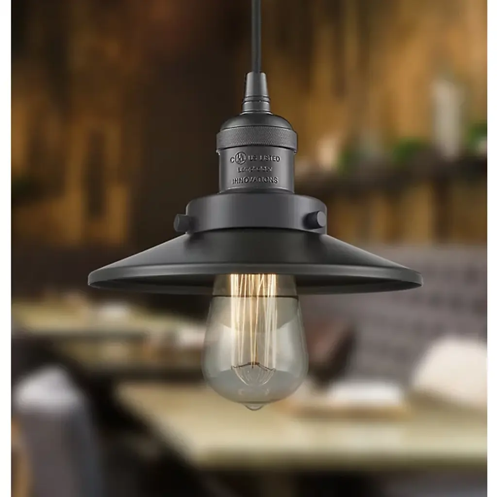 Bold, sharp, direct. The Tobin Mini Pendant from Alder & Ore is a tight light source, directing one’s eyes to key areas or furnishings. The pendant marries modern and industrial styling. Its modern personality shows in the ultra-slim quality of its suspension. Its industrial side is revealed on the bold metal lamp holder. Raised lettering textures up the lamp holder along with a knurled ring accent. The shade below shoots out at a sharp angle to guide the light towards one’s floor or table surfaces. The addition of Edison-style bulbs gives the piece a familiar silhouette and intimate warmth.
