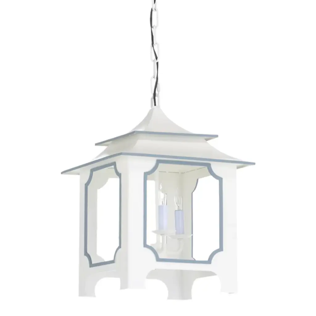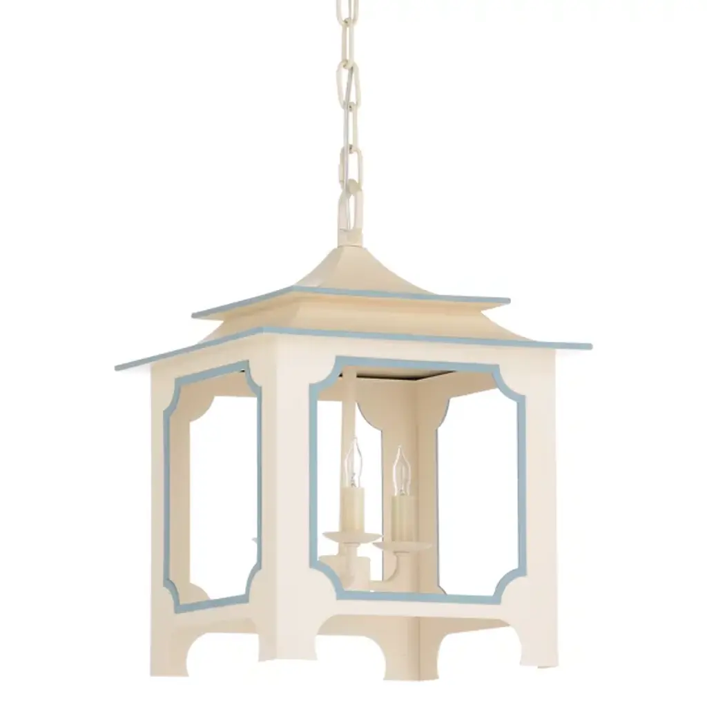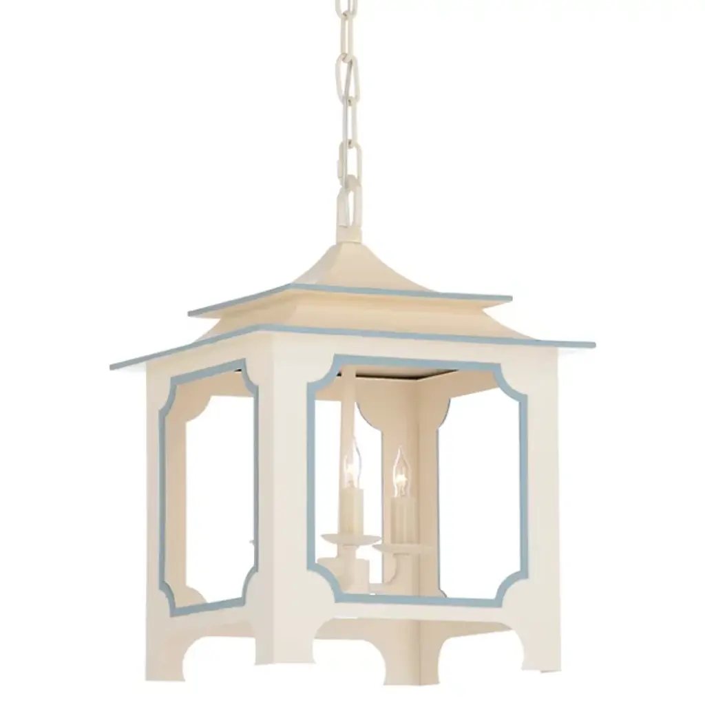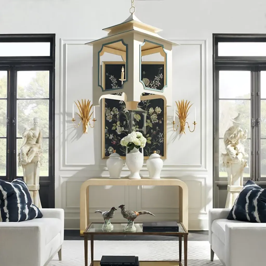 The Tole Pagoda Pendant from Chelsea House draws inspiration from classical Asian architecture with its tiered roof design. Claire Bell's artisanship shines through the handpainted toleware construction, with delicate edging that accentuates the geometric framework. Each scalloped window opening allows light to flow outward in a gentle pattern. The pendant's authentic pagoda structure incorporates traditional elements, including upturned eaves and squared proportions. This handcrafted piece brings historical Eastern design elements into contemporary spaces. The pendant's intricate detailing and traditional profile make it an exceptional accent for entryways, dining areas, or intimate seating arrangements.