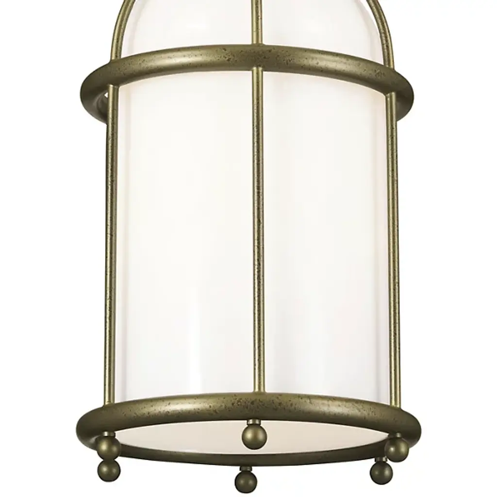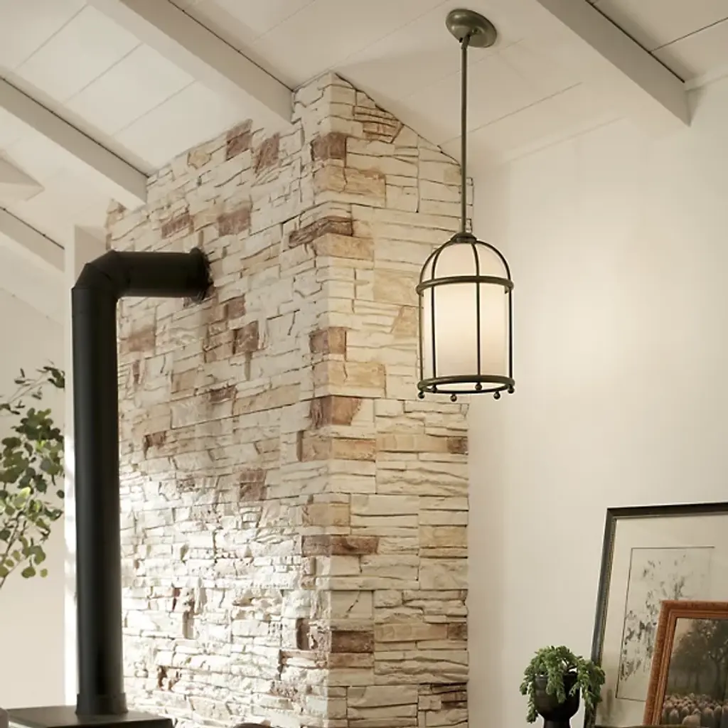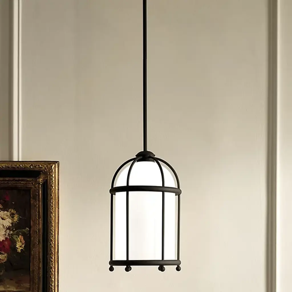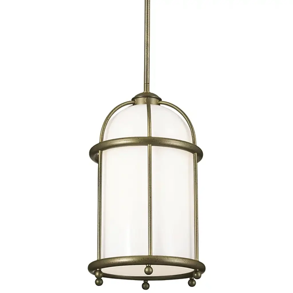 The Topiary Pendant by Kichler illuminates your home while bringing a transitional aesthetic to your living space. An ovular shade of opal glass is beautifully encased by a frame of steel. This pendant maintains suspension in midair through attachment to a downrod extending from a ceiling canopy. A halogen bulb rests inside of the pendant’s shade, allowing bright light to easily diffuse throughout your environment. Take control of your light’s brightness level when you pair the Topiary Pendant with a standard dimmer.