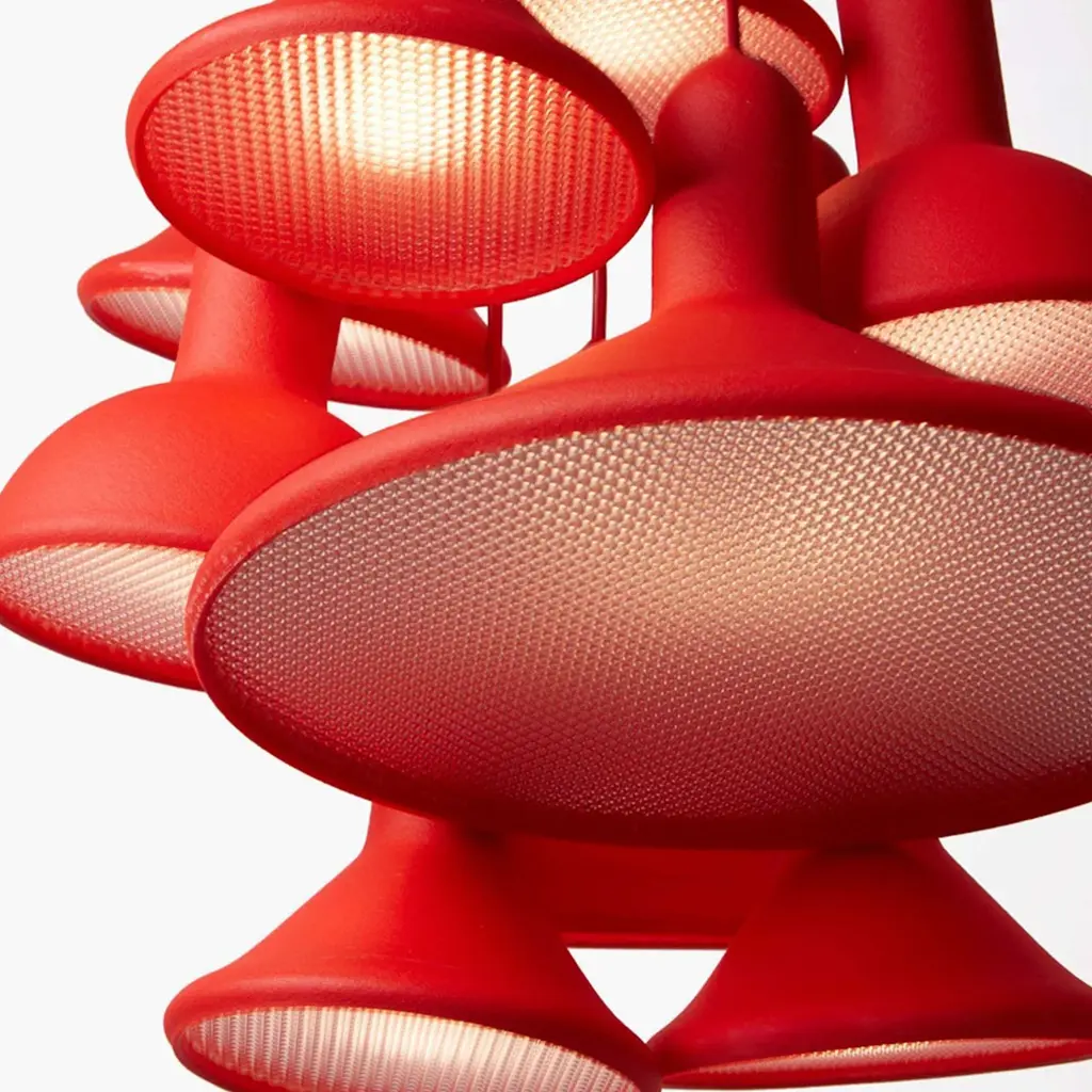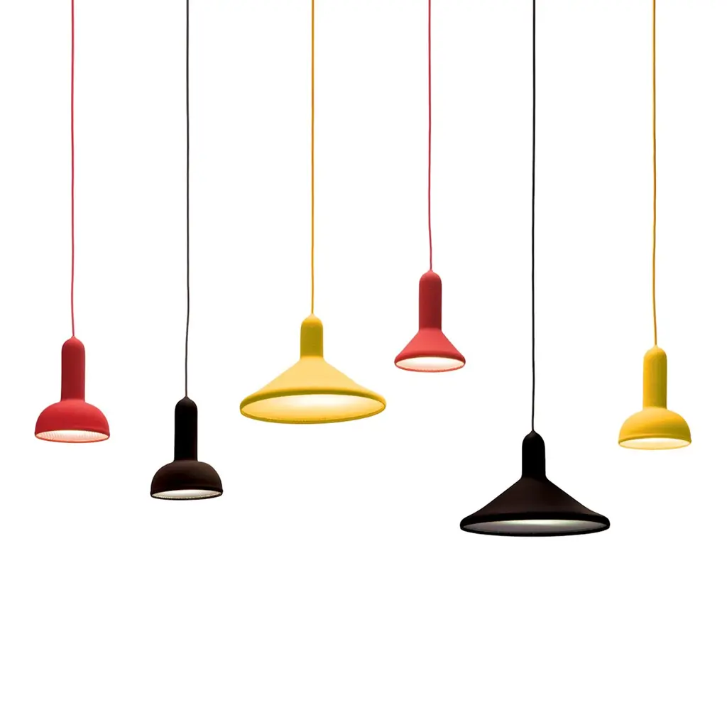 Belgian design star Sylvain Willenz redefines the typical torch in PVC dipped-polymer for this LED pendant. Torch Light’s diamond-textured diffuser cleverly references a car’s headlights while the lightweight shade comes in 3 crisply varied shapes. Made for mixing and matching—with a wide array of colors and sizes—the light is available with a custom cable drop to accommodate varied ceiling heights.