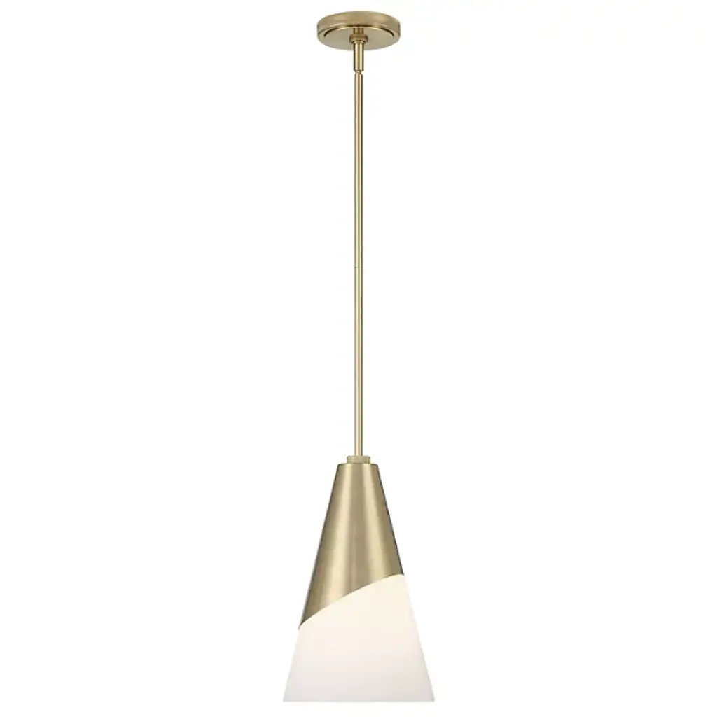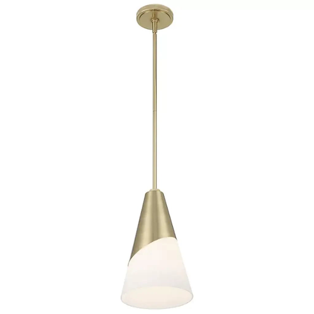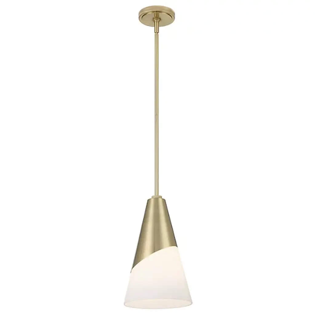 Designed by Brian Patrick Flynn, the Tori Pendant from Crystorama impeccably balances minimalism with contemporary flair. This fixture features a distinctive two-toned, cone-shaped shade that captures the essence of industrial aesthetics while achieving a raw, edgy style. The frosted glass diffuser spreads a warm, welcoming glow, building an inviting atmosphere. This pendant easily adapts to various contemporary settings and is ideal for kitchens, bathrooms, bedrooms, or offices.