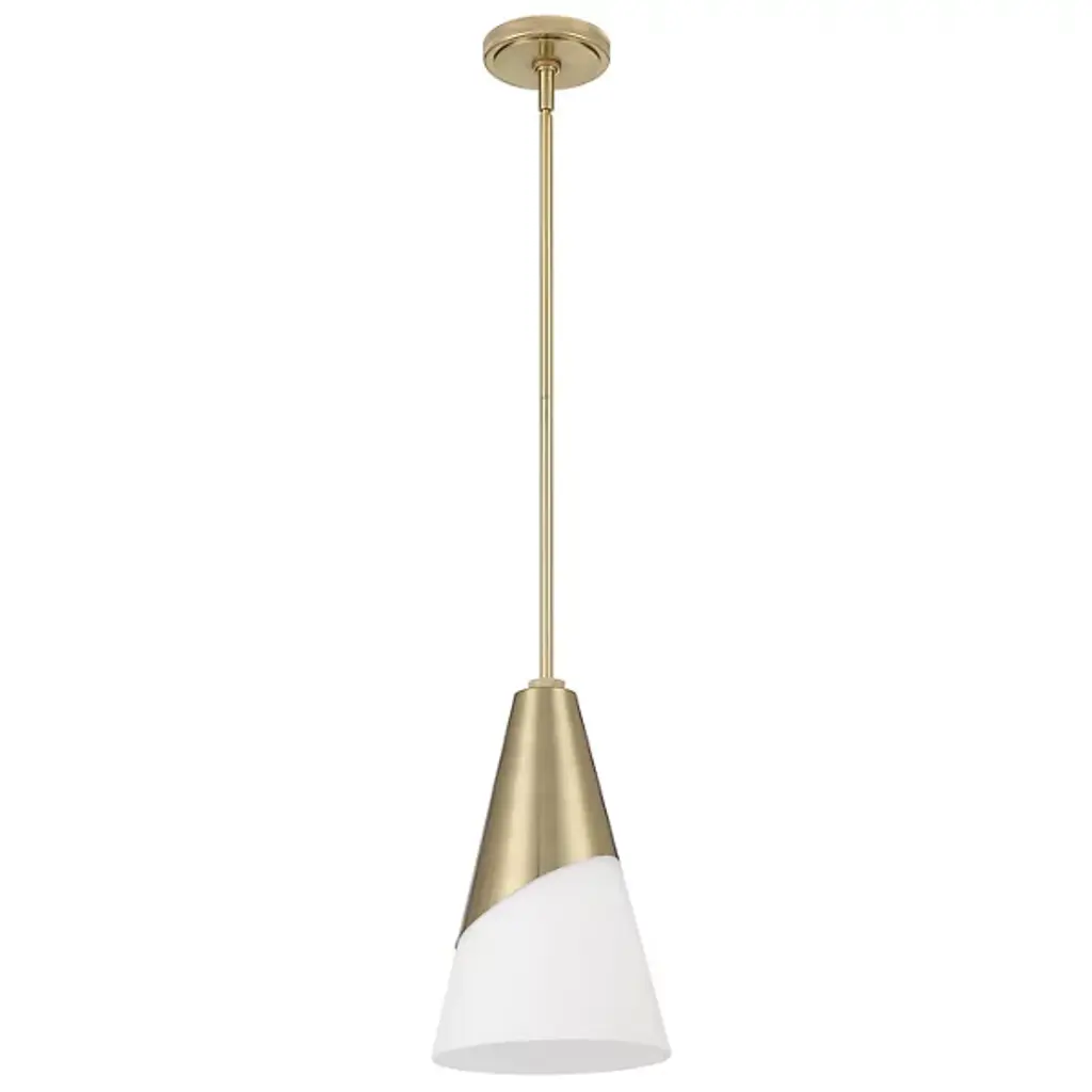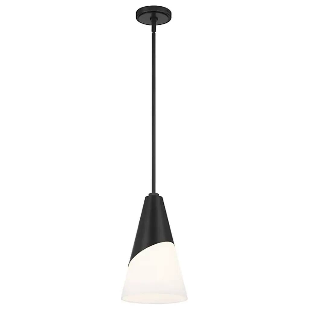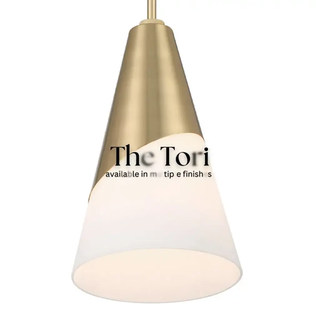 Designed by Brian Patrick Flynn, the Tori Pendant from Crystorama impeccably balances minimalism with contemporary flair. This fixture features a distinctive two-toned, cone-shaped shade that captures the essence of industrial aesthetics while achieving a raw, edgy style. The frosted glass diffuser spreads a warm, welcoming glow, building an inviting atmosphere. This pendant easily adapts to various contemporary settings and is ideal for kitchens, bathrooms, bedrooms, or offices.