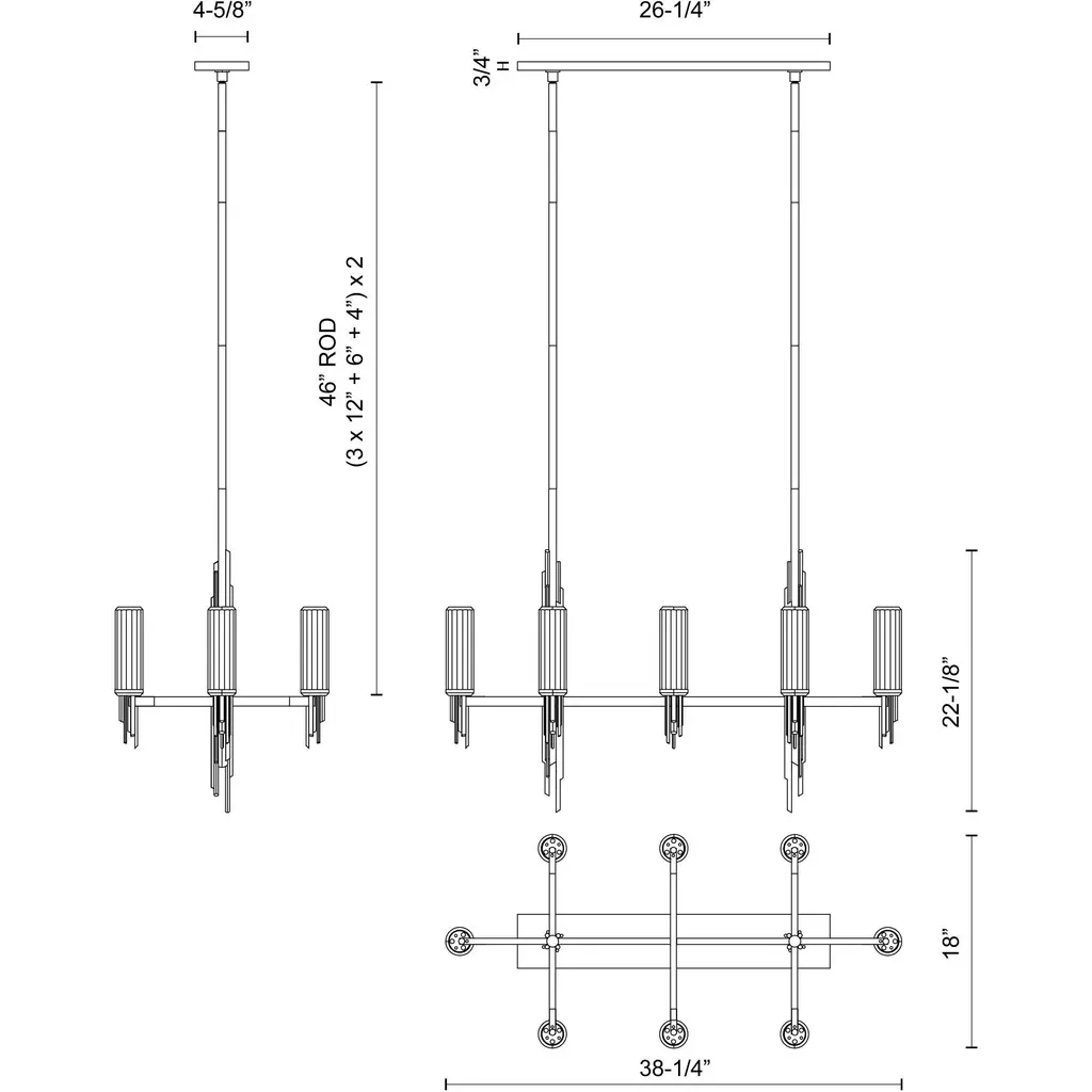 Torres 8 Light 38.25 Inch Matte Black Linear Pendant Ceiling Light
