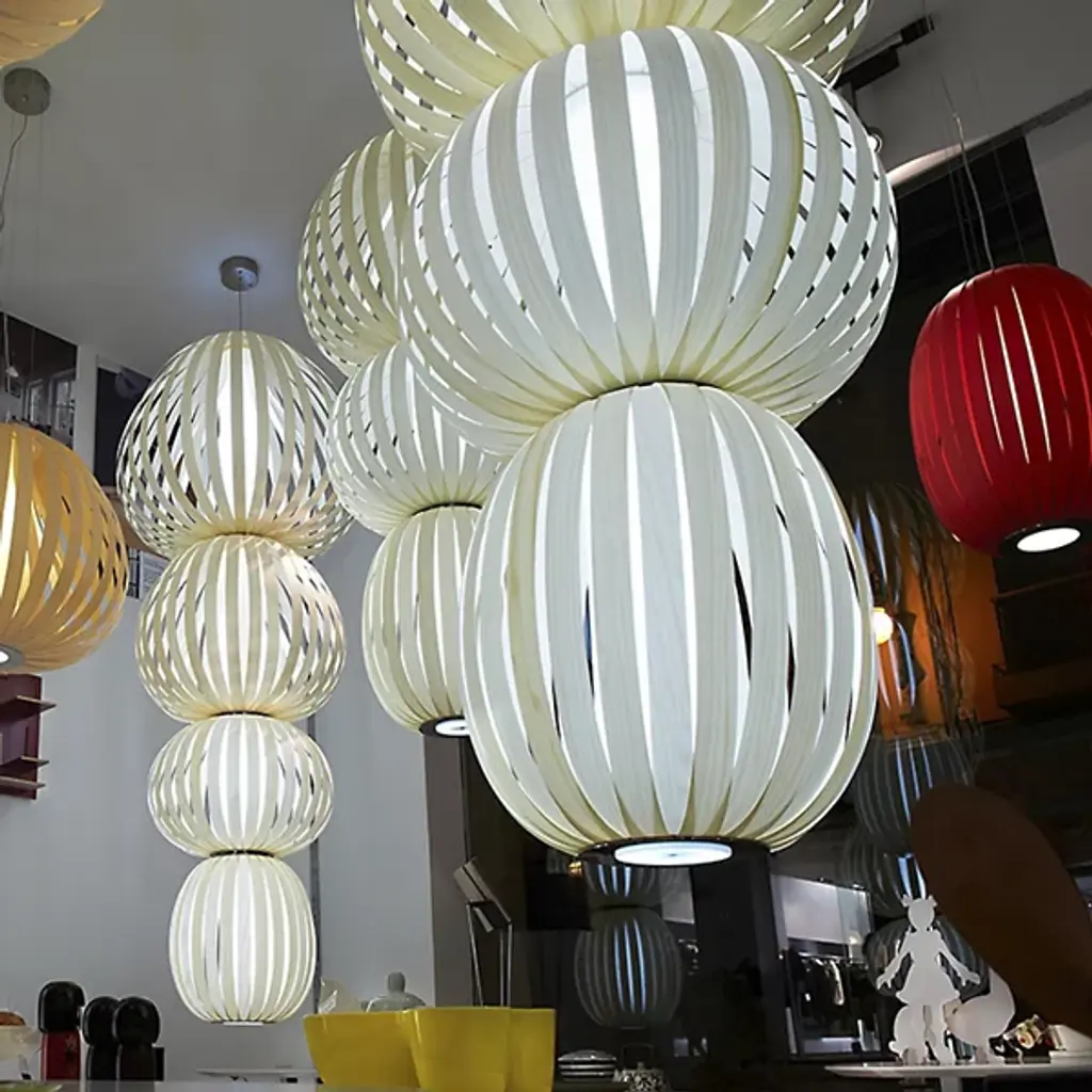 After interior design experts Marivi Calvo and Burkhard Dammer arrived home from their trip to Istanbul, they brought with them the inspiration that led to the Totem 3-Light LED Pendant by LZF Lamps. Its air veneer globes are stacked in a tiered pattern, while the gorgeous grained wood veneers are organized in strips to generate diffused illumination. UL-listed and sporting an 8-foot cord, this fixture radiates exotic beauty.