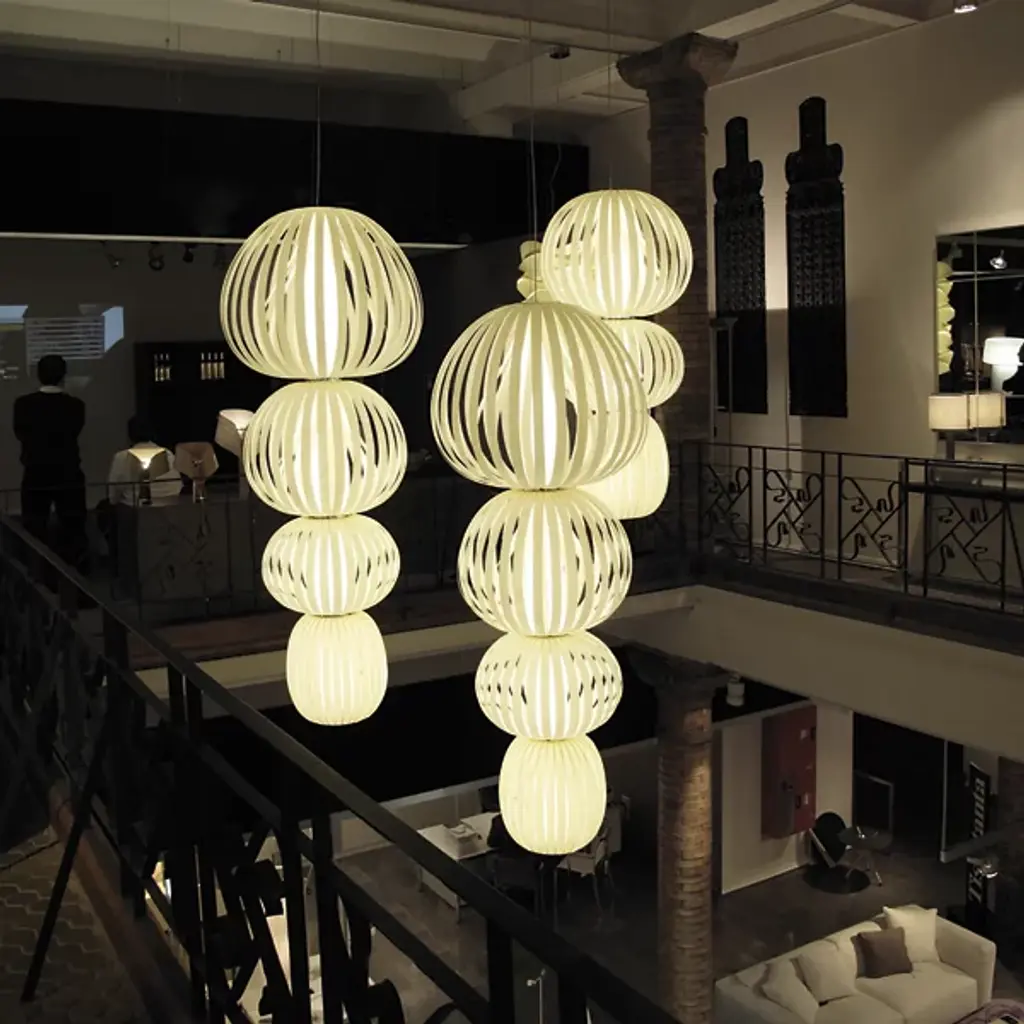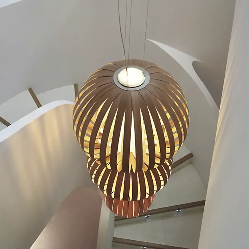 After interior design experts Marivi Calvo and Burkhard Dammer arrived home from their trip to Istanbul, they brought with them the inspiration that led to the Totem 3-Light LED Pendant by LZF Lamps. Its air veneer globes are stacked in a tiered pattern, while the gorgeous grained wood veneers are organized in strips to generate diffused illumination. UL-listed and sporting an 8-foot cord, this fixture radiates exotic beauty.
