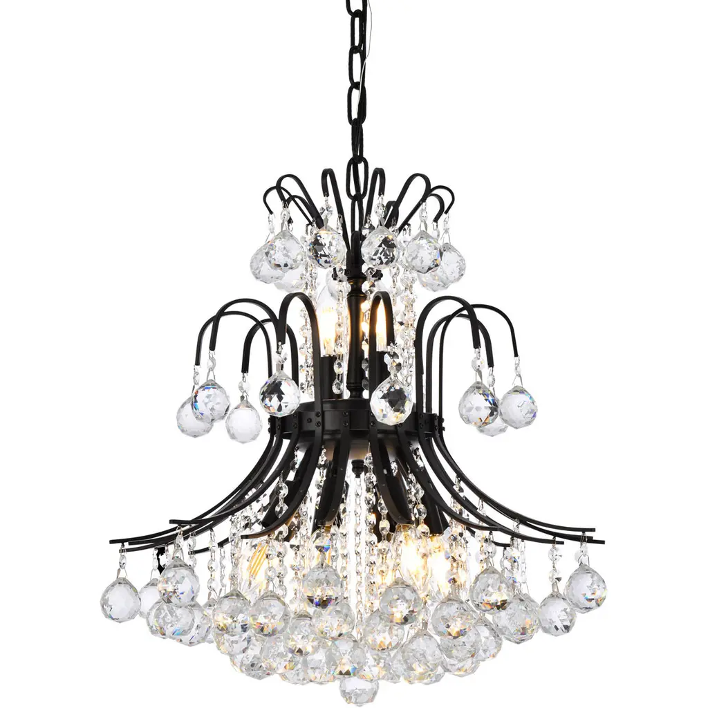 A treasure trove of glittering crystals, Toureg collection pendant lamps are generous with their sparkle. Stately curved steel arms and frame form an opulent flared shape available in black, chrome or gold finishes. Faceted clear crystal balls and crystal octagons offer a variety of options to choose from. Certain to be the center of attention in the dining room, living room, bedroom, or stairwell.